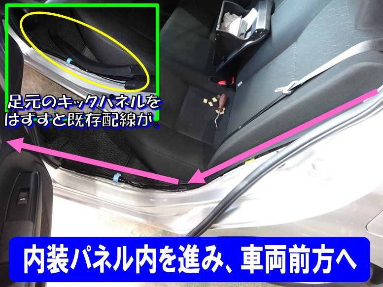 前方へ引き回す作業では、主に「カーテンエアバッグがあるかどうか」によって