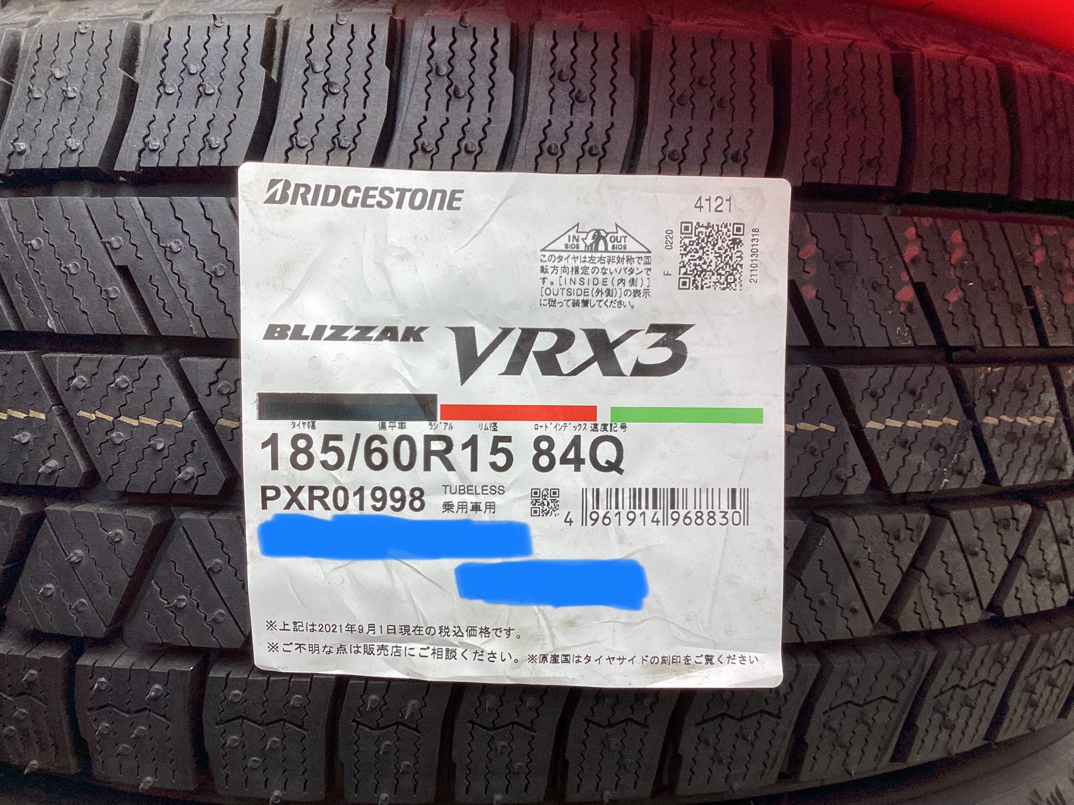 185/60R15 BLIZZAK VRX3 2021年製 限定1セット