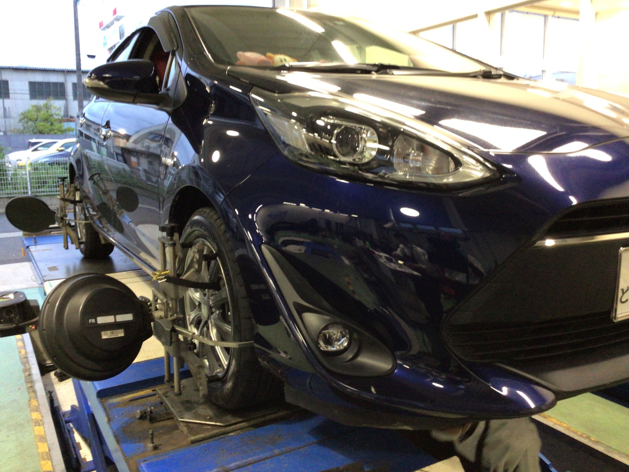 今回は、トヨタ アクアタイヤ交換後のアライメント測定・調整です。