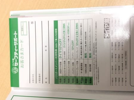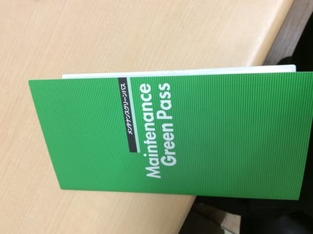 お客様に配らせて頂いているメンテナンスグリーンパスポート(メンパス)