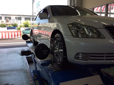 トヨタのクラウンのタイヤ交換とアライメントを実施させて頂きました。