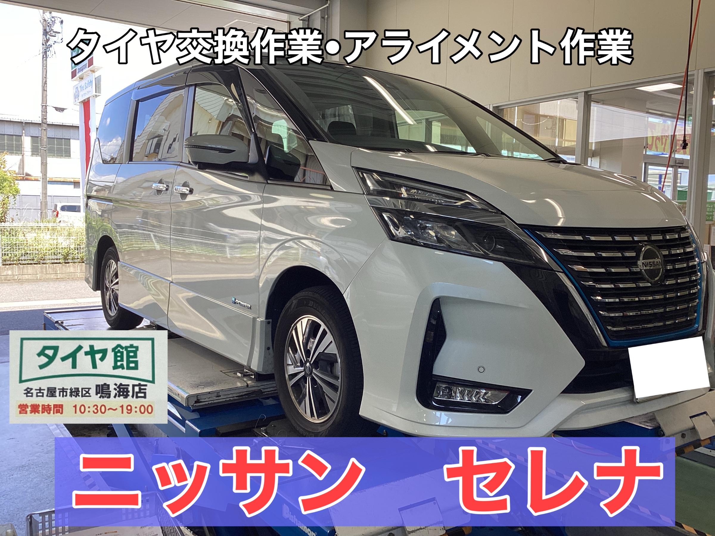 【ニッサン・セレナ】夏用タイヤ交換作業・アライメント作業(ブリヂストン ECOPIA NH200)