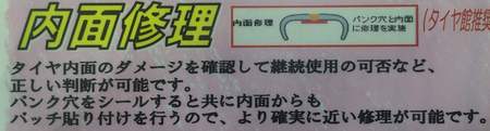 また、外面、内面にかかわらず、パンクしてしまった箇所、穴の大きさ、タイヤ内面のダメージの度合いによってはパンク修理が出来ないこともありますのでご了承下さい。