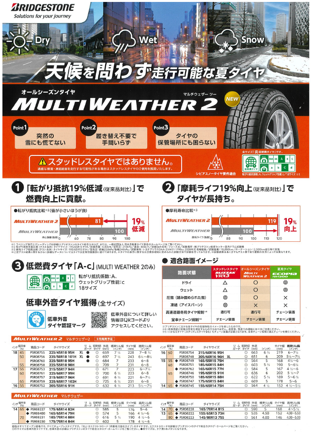 ブリヂストンの新しいオールシーズンタイヤ「MULTI WEATHER2(マルチウェザー2)」のご紹介です。