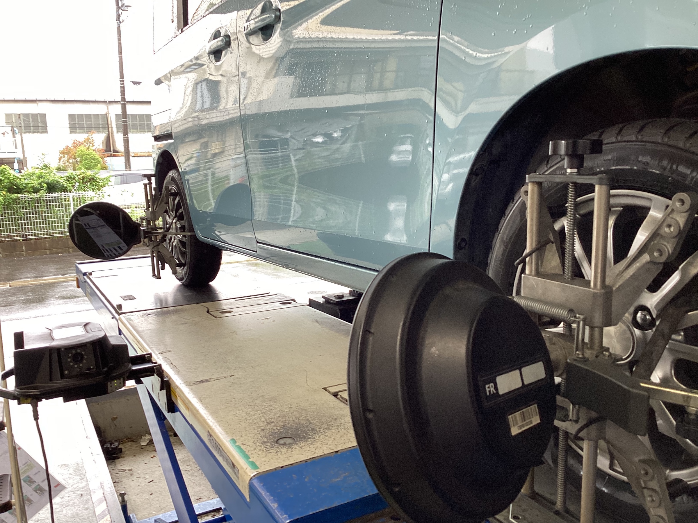 タイヤの寿命を延ばしたり、走行の安定さを向上させたりする作業:「アライメント調整作業」も同時に実施させていただきました。