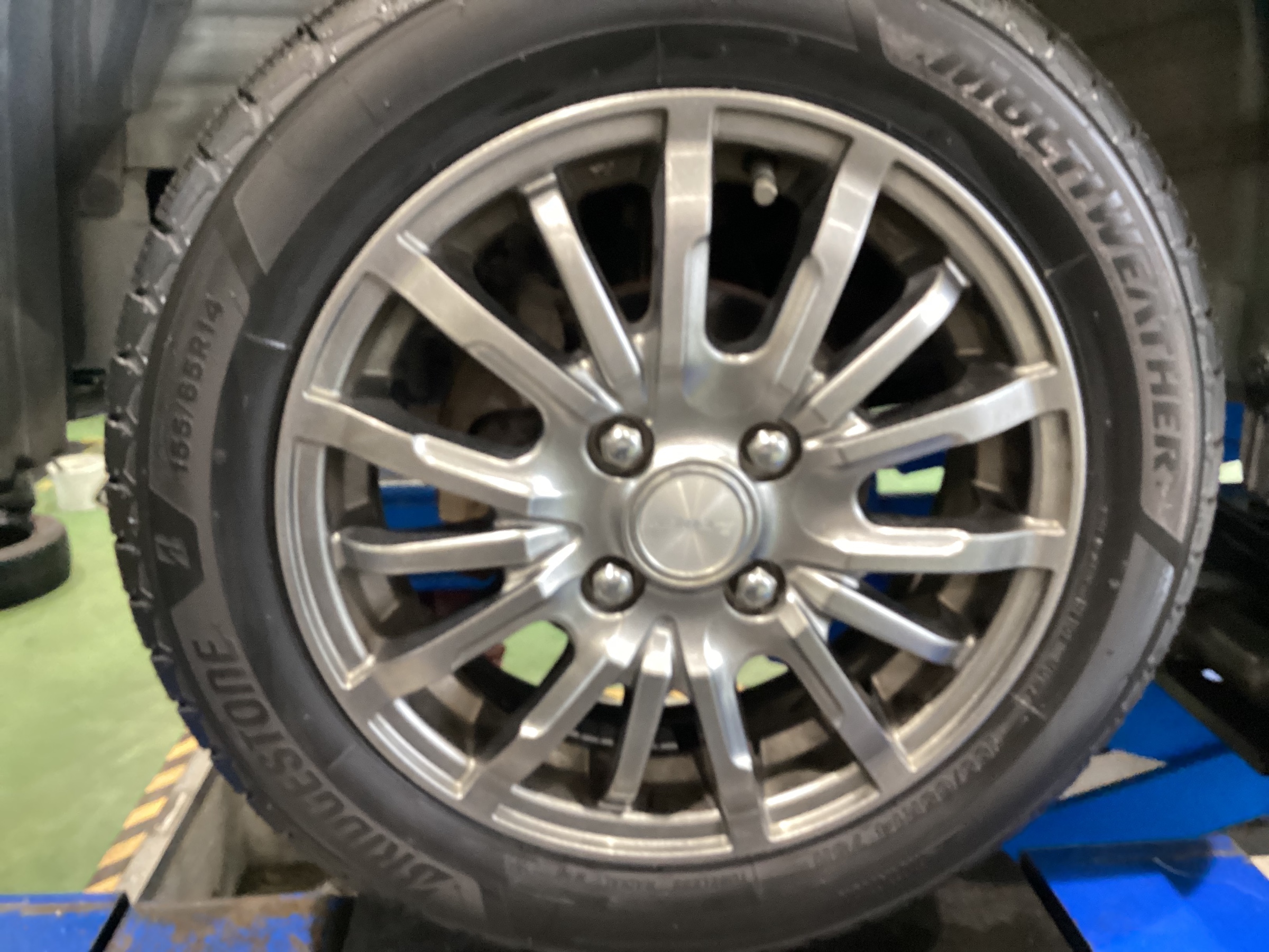 【スズキ・スペーシア】オールシーズンタイヤ交換作業 アライメント作業(ブリヂストン MULTI WEATHER 2)