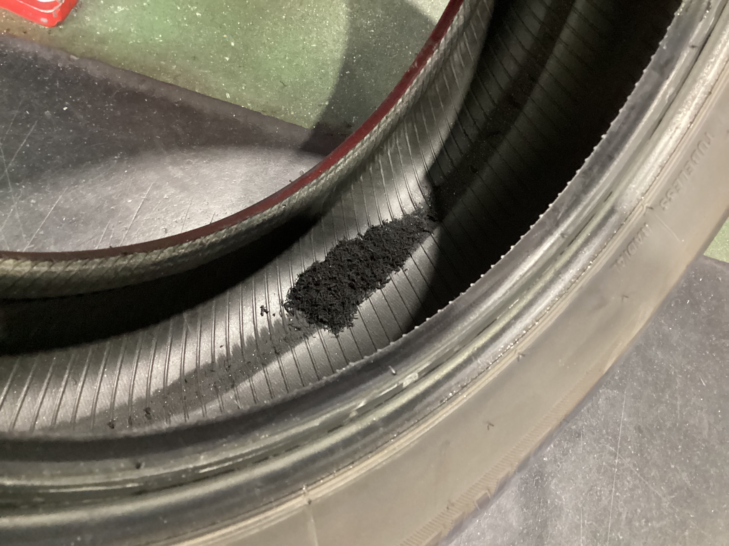 「引き摺り痕」がある場合はタイヤ内部に大きな損傷がある可能性があります。