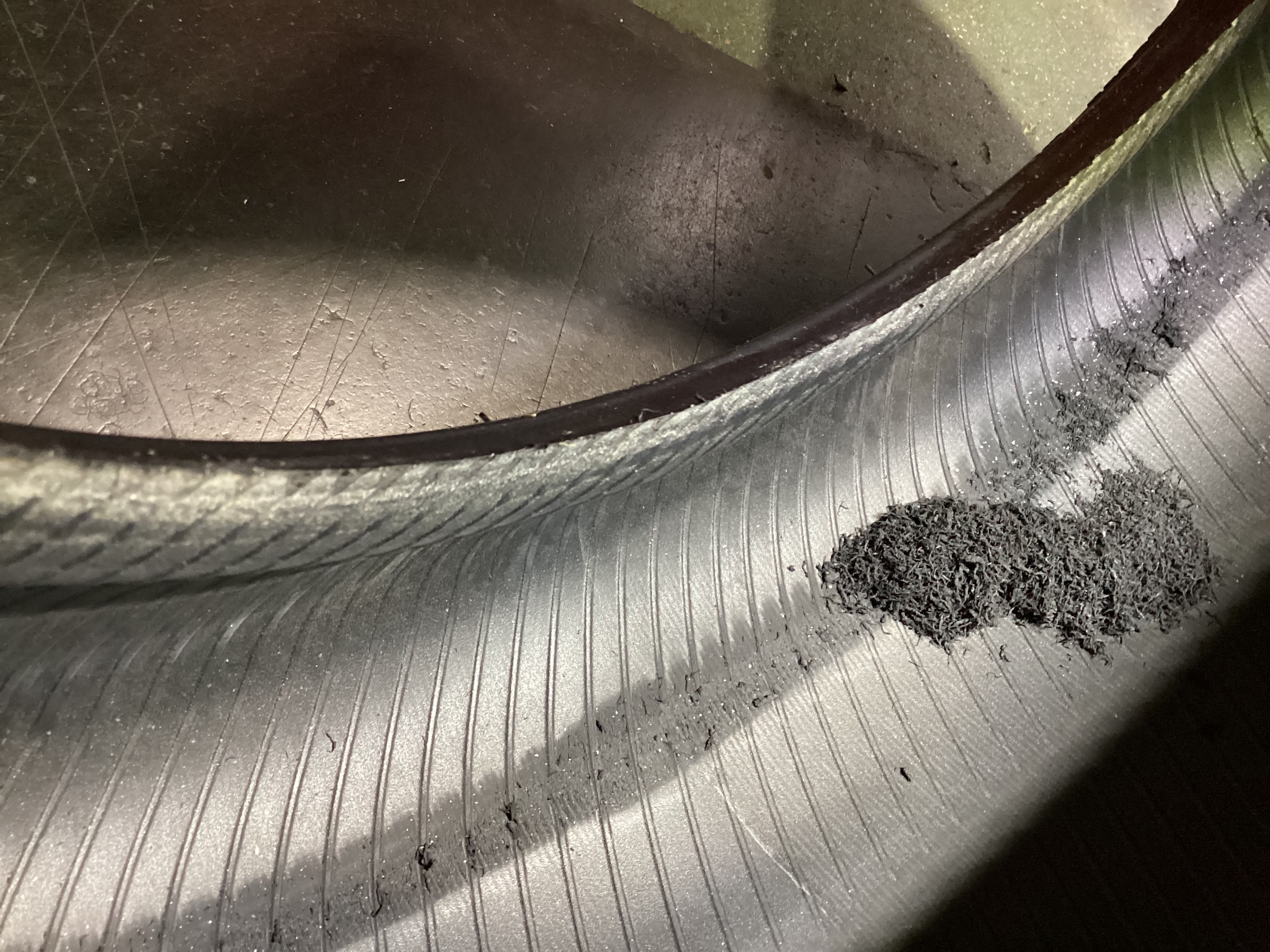 と言うのも、タイヤ側面の色が濃くなっているところ