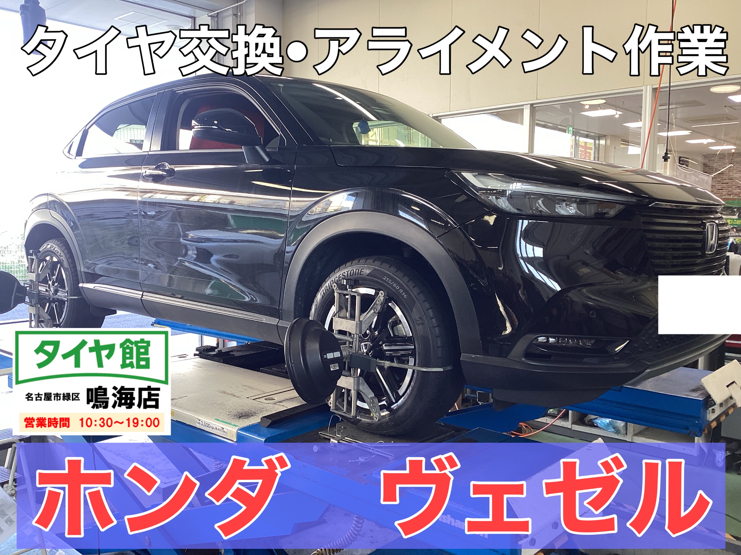 【ホンダ・ヴェゼル】夏用タイヤ交換作業・アライメント作業(Playz PX−RVⅡ)