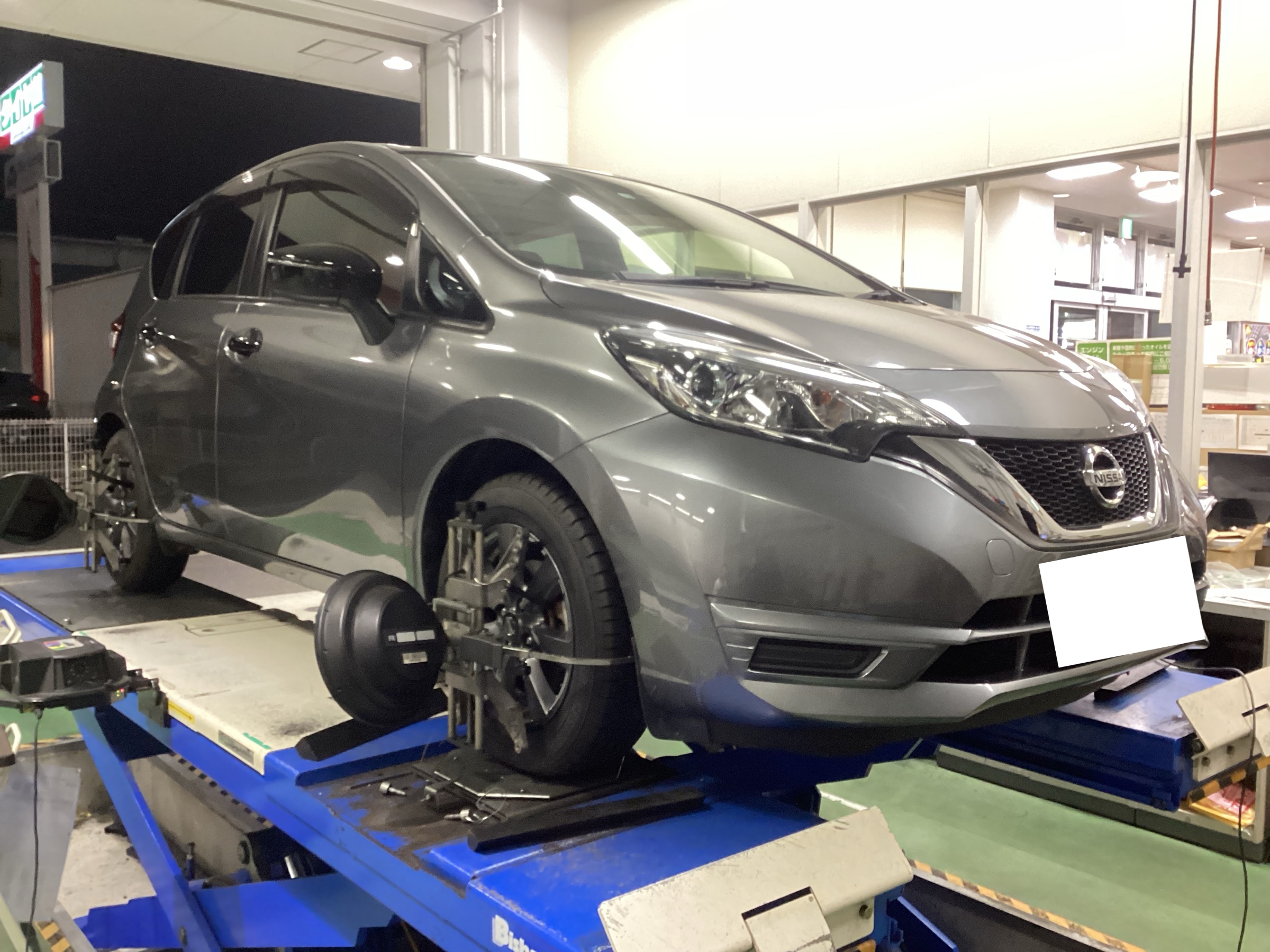 【ニッサン・ノート】夏用タイヤ交換・アライメント作業(ブリヂストン NEWNO)