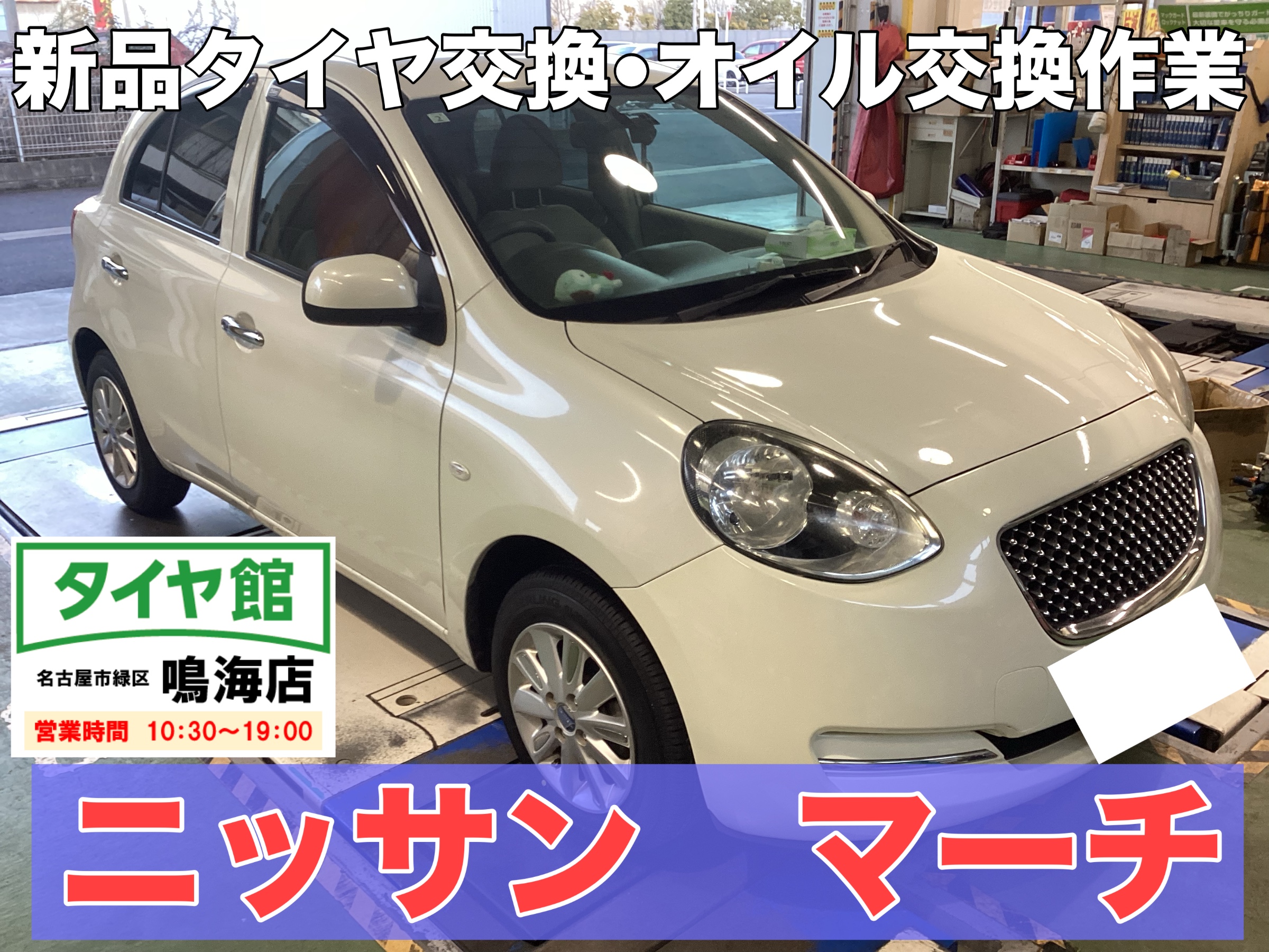 【ニッサン マーチ】夏用タイヤ交換・エンジンオイル交換作業(SEIBERLING SL101)