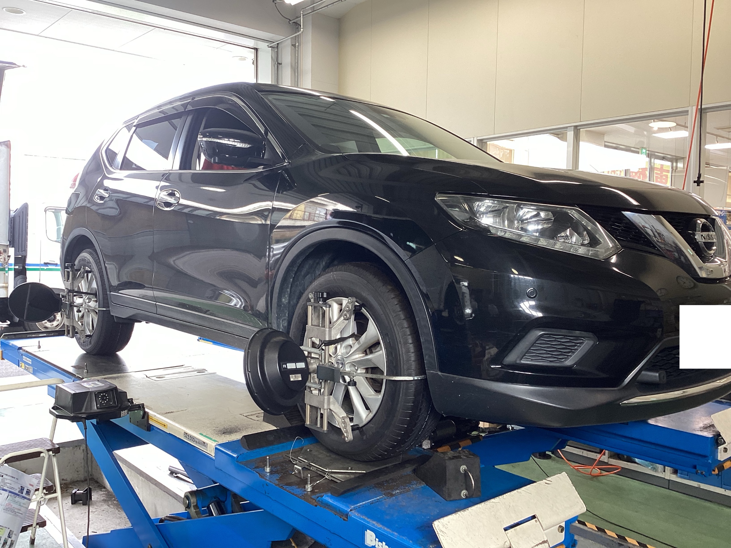 【ニッサン・エクストレイル】夏用タイヤ交換・アライメント作業(ブリヂストン DUELER H/L850)