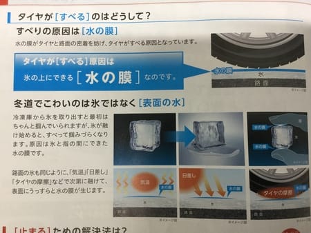 その為、タイヤが浮いてしまい氷路面に密着できなくなるのですべってしまいます。