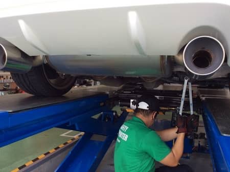 測定すると、左リアは基準値からズレた数値が出ていたので、しっかり再調整させて頂きました。