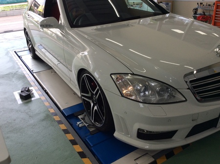 今回は、メルセデスベンツ、Sクラスのアライメント調整をしました。