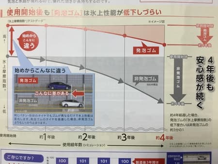 発泡ゴムと非発泡ゴムのタイヤは、使い始めから性能がこんなに違います。