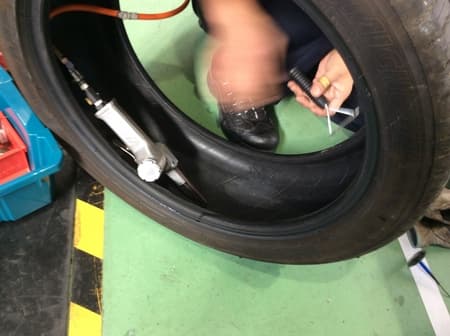 パンクで空いてしまった穴をシールすると共に内面からもパッチの貼付を行うので