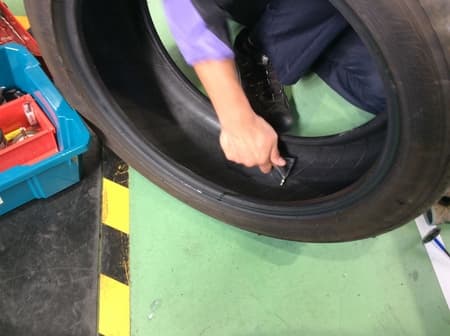 当店のパンク修理は2種類あって外から直す外面修理と1度タイヤを外して中から直す内面修理の2パターンがあります。