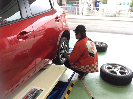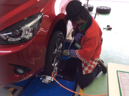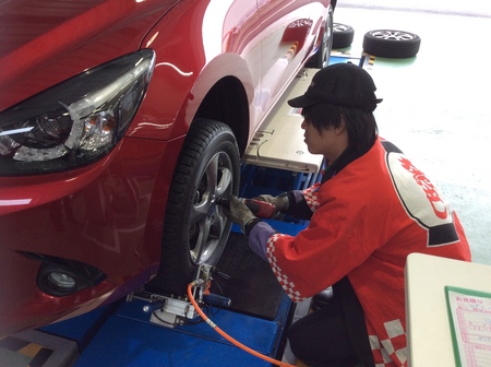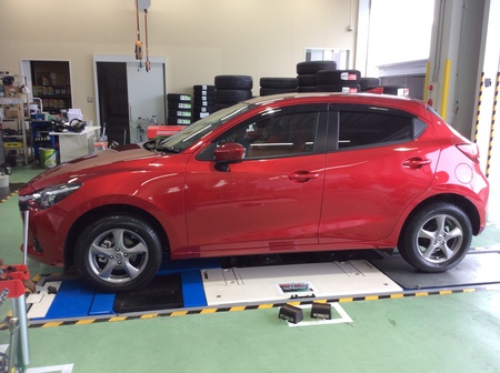 マツダの新型デミオに、先日ご予約頂いたスタッドレスタイヤを取付しました。