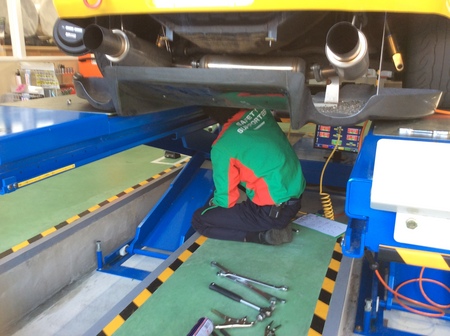 アライメント ポスト 2016年11月13日 名古屋市緑区・南区・豊明市にお住まいの皆様こんにちは!緑区鳴海町にあります、タイヤ館鳴海店です。店長が嬉しそうにアライメントを調整中♪サーキットに行かれる方のアライメントも実施中です。ディフューザーが着いていますので外して調整中です。工具が散らばっているのはナイショで(笑) 担当:ぴっける
