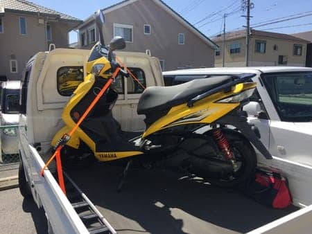 軽トラを買ったので、お世話になっているバイク屋さんへ楽々お運び。