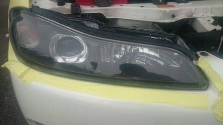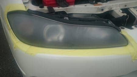 ヘッドライトの曇りを耐水ペーパーで削って、