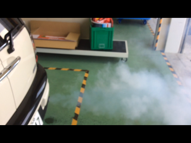 エンジンを吹かすと、白い煙がモクモクと・・・