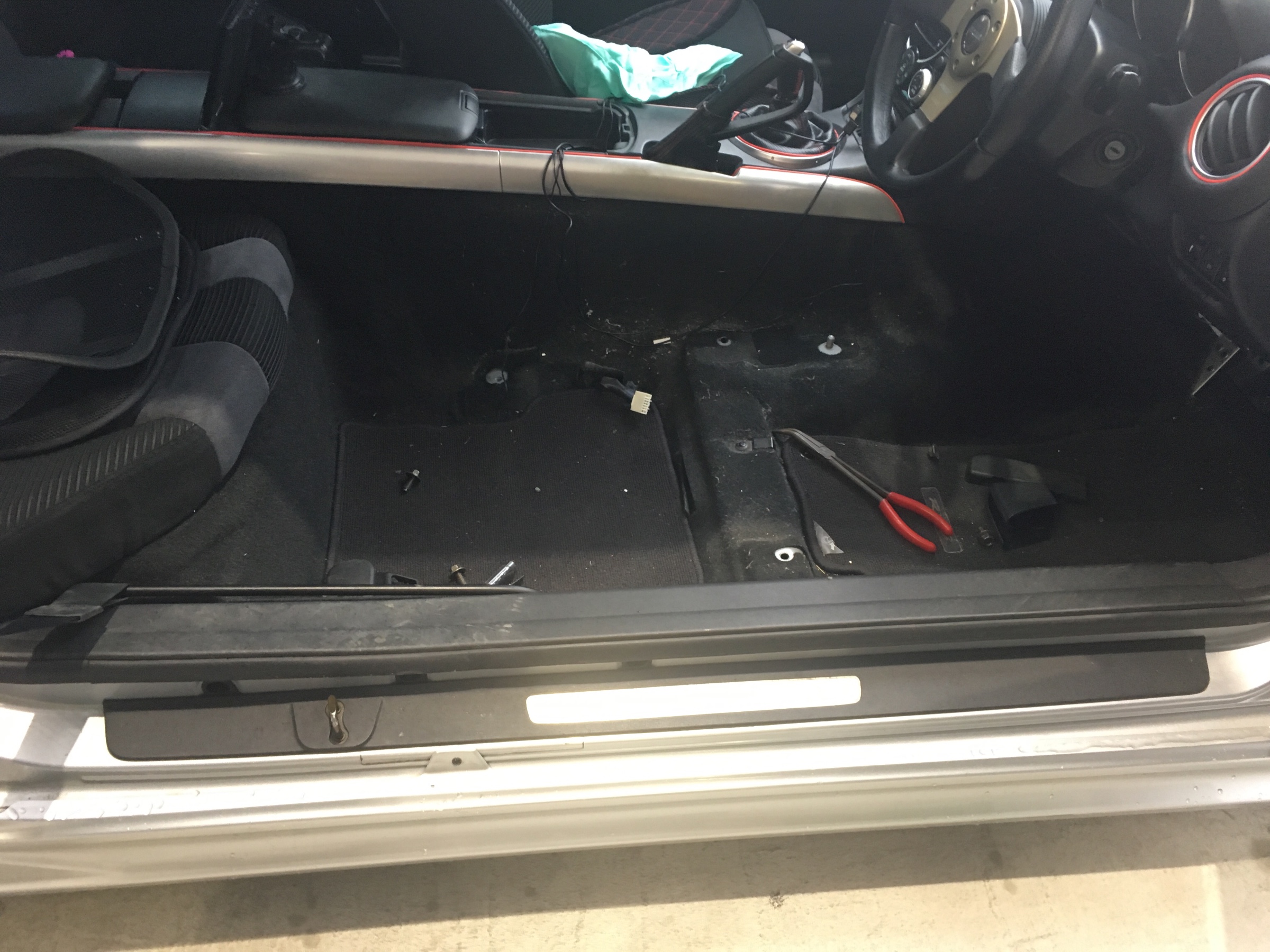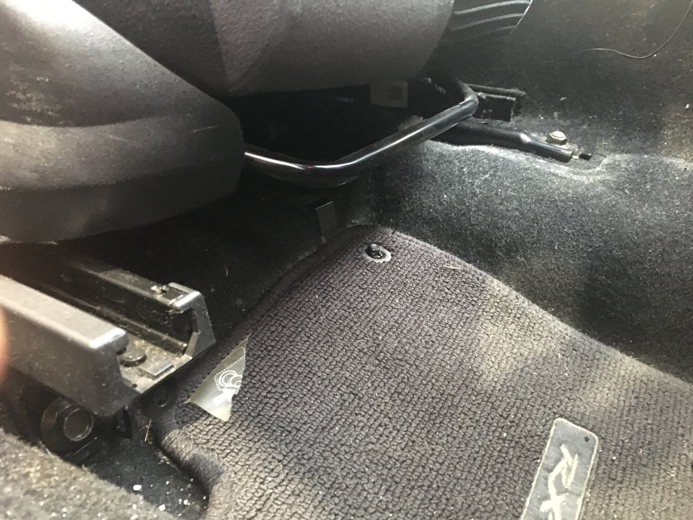 シートを前後させて固定してあるボルトを外し、シートベルトの配線カプラーも外します。