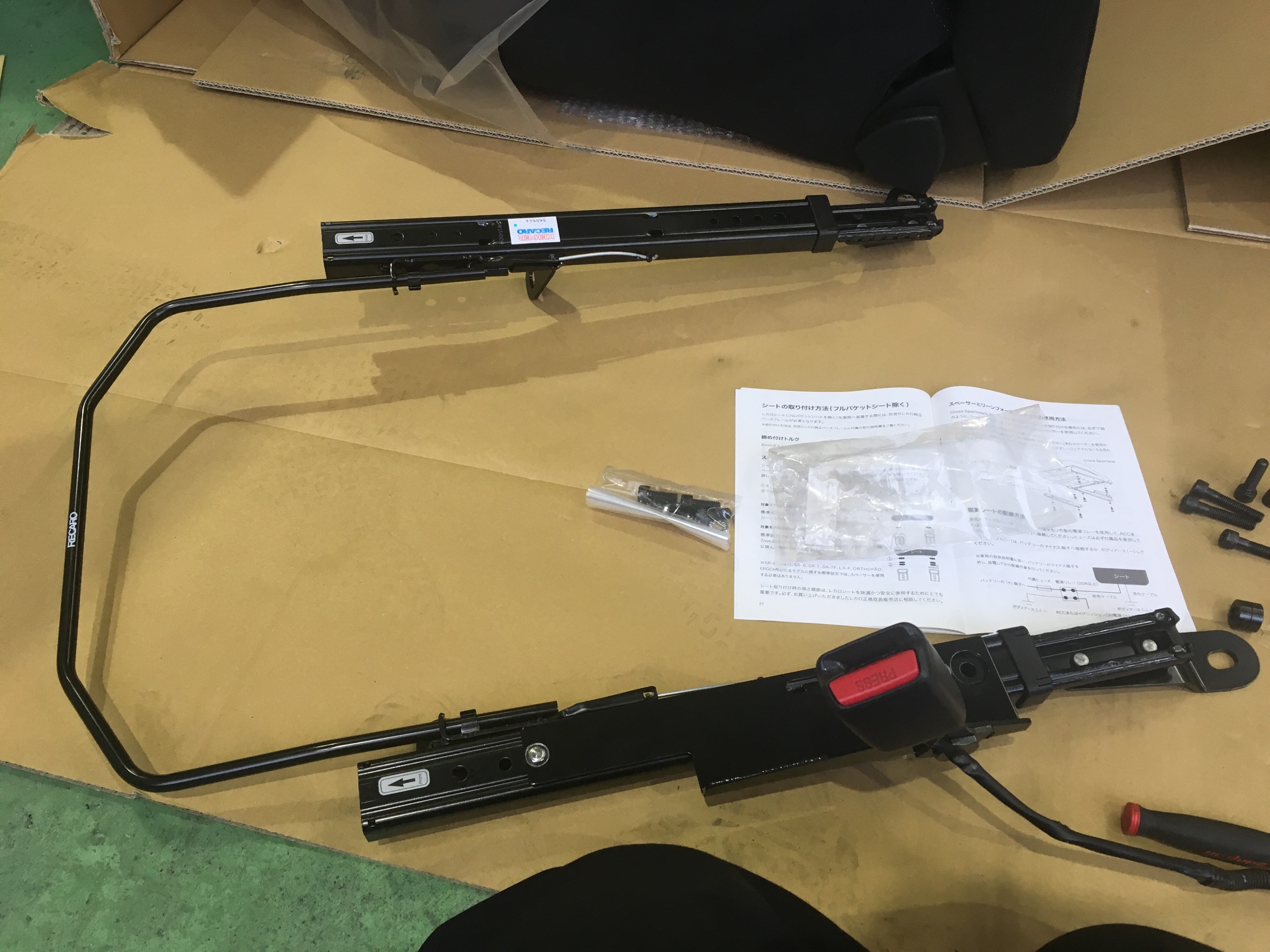 本日は先日入荷しましたRECAROシートの取り付けを行いました。