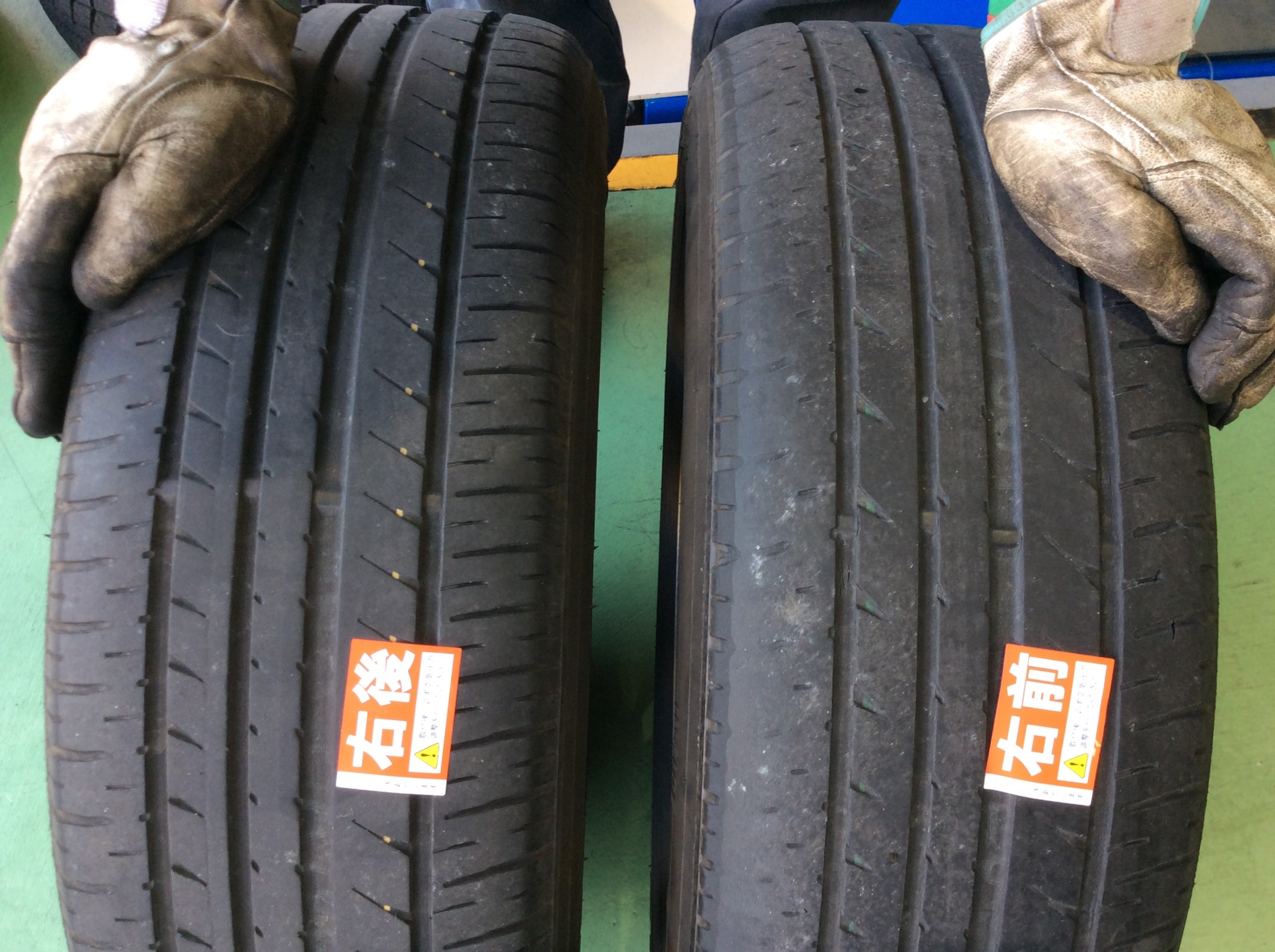 アライメント ポスト 2019年6月8日 名古屋市緑区・南区・豊明市にお住まいの皆様、こんにちは! 緑区鳴海町にあります、タイヤ館 鳴海店です。 アライメントってご存知ですか? 下の写真を見てみると・・・・ 右のタイヤが肩ベリしてるのがわかりますか? こういう減り方をしているとタイヤが早く減ってもったいないんです。 もしこういう減り方をしていたらアライメント調整をオススメ致します。 タイヤの接地角度などを変える作業のことなんです。 詳しくは店員までお尋ねください。 担当:佐藤
