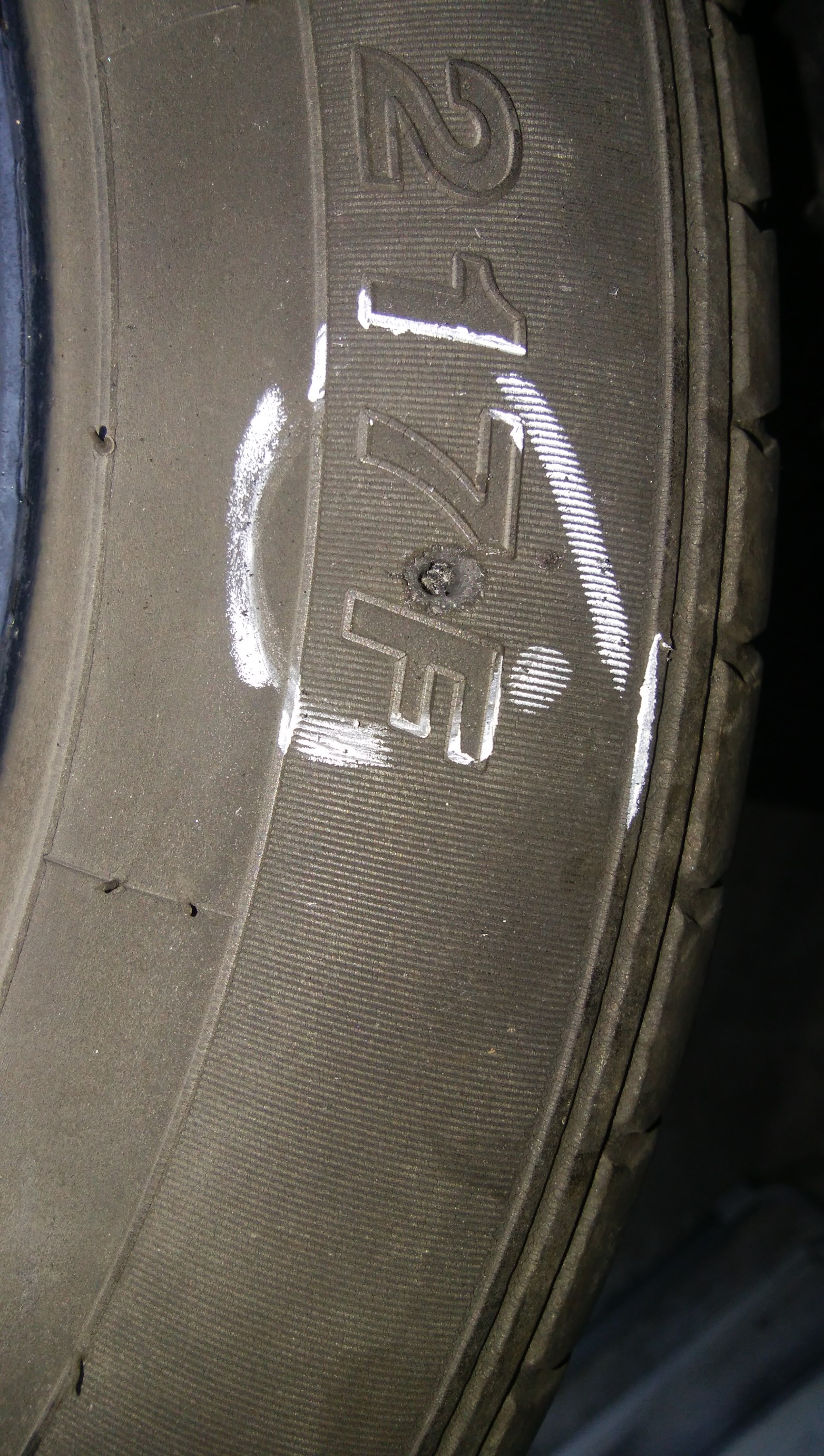 実際お客様で当店でタイヤ点検を行い、遠出前にパンクを発見し、遠方でのトラ