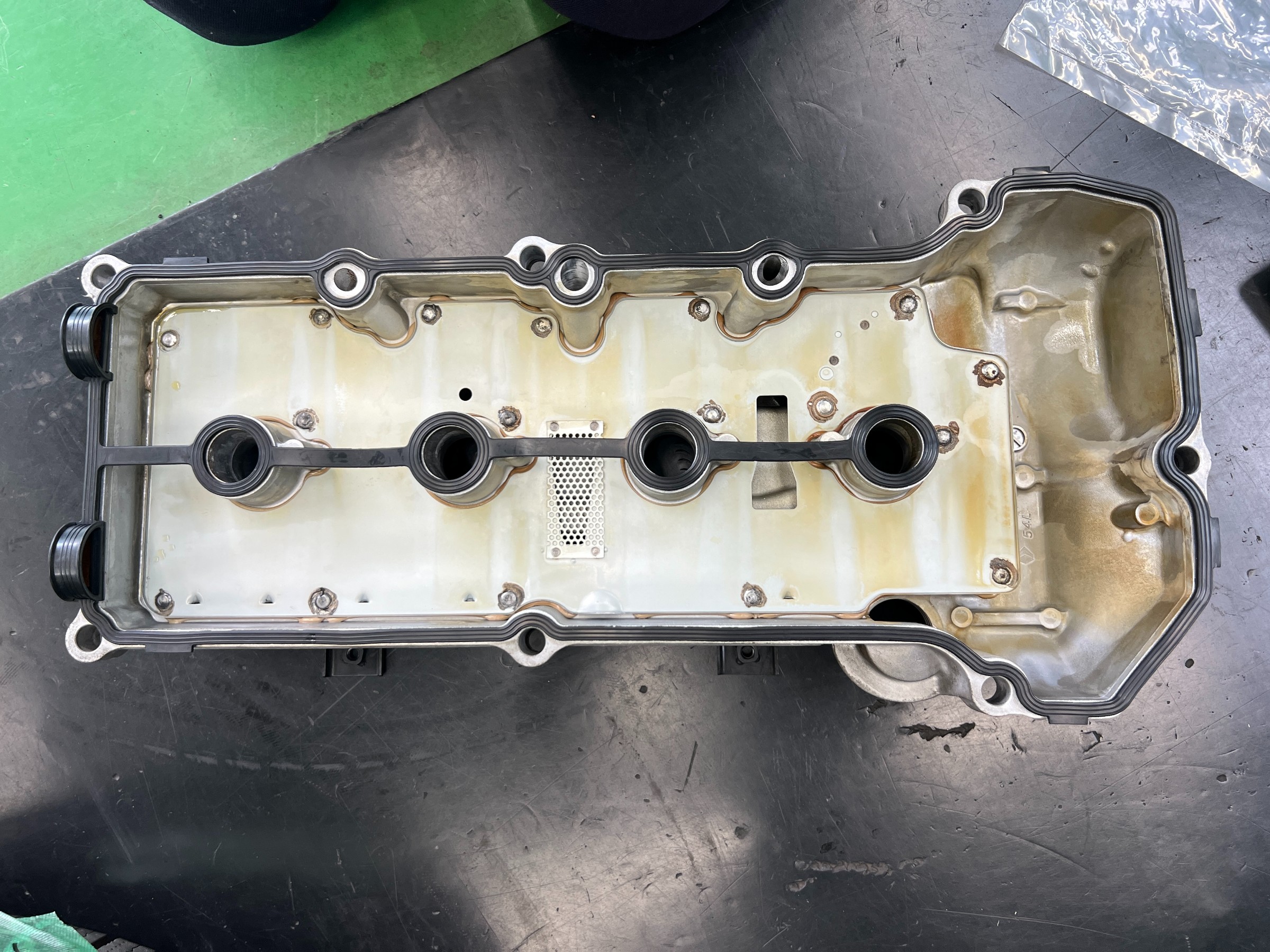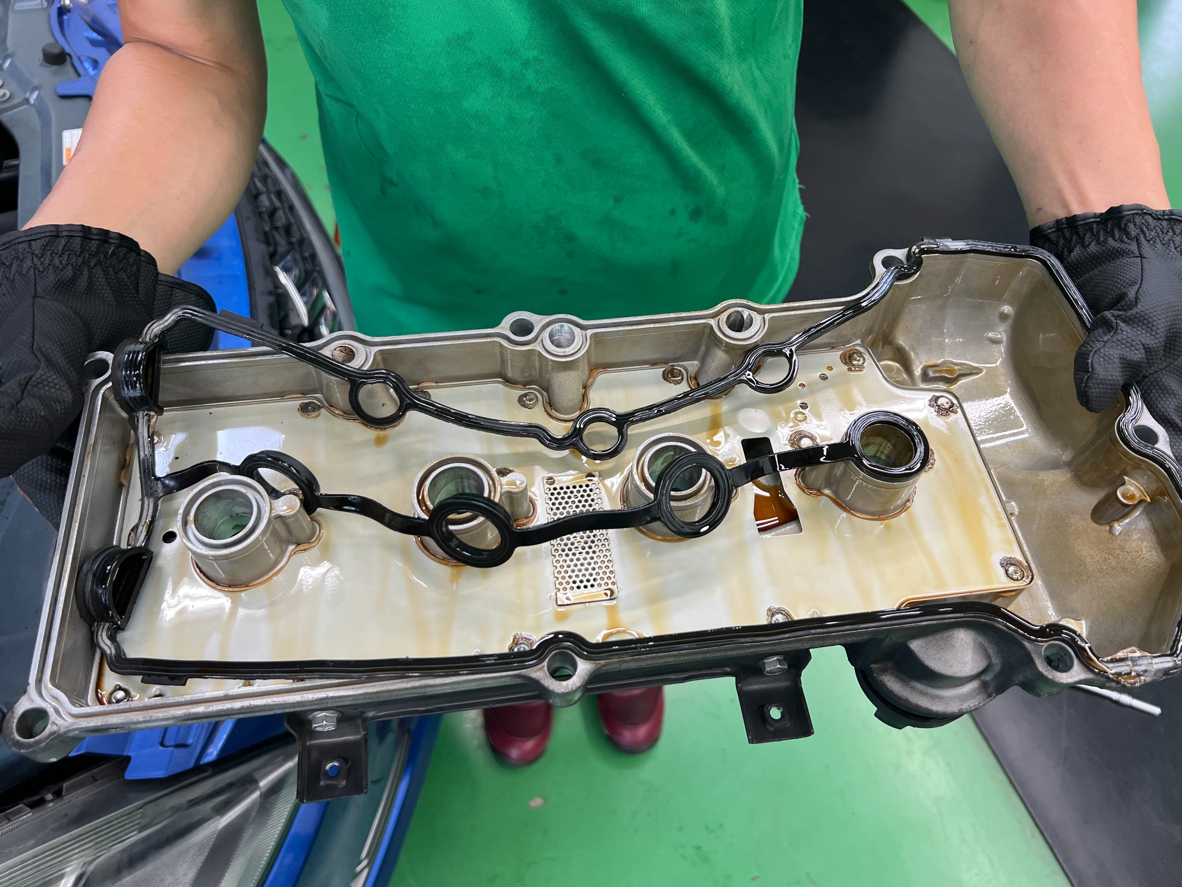 ヘッドカバーを外すと、ガスケットが劣化していることが分かりました。