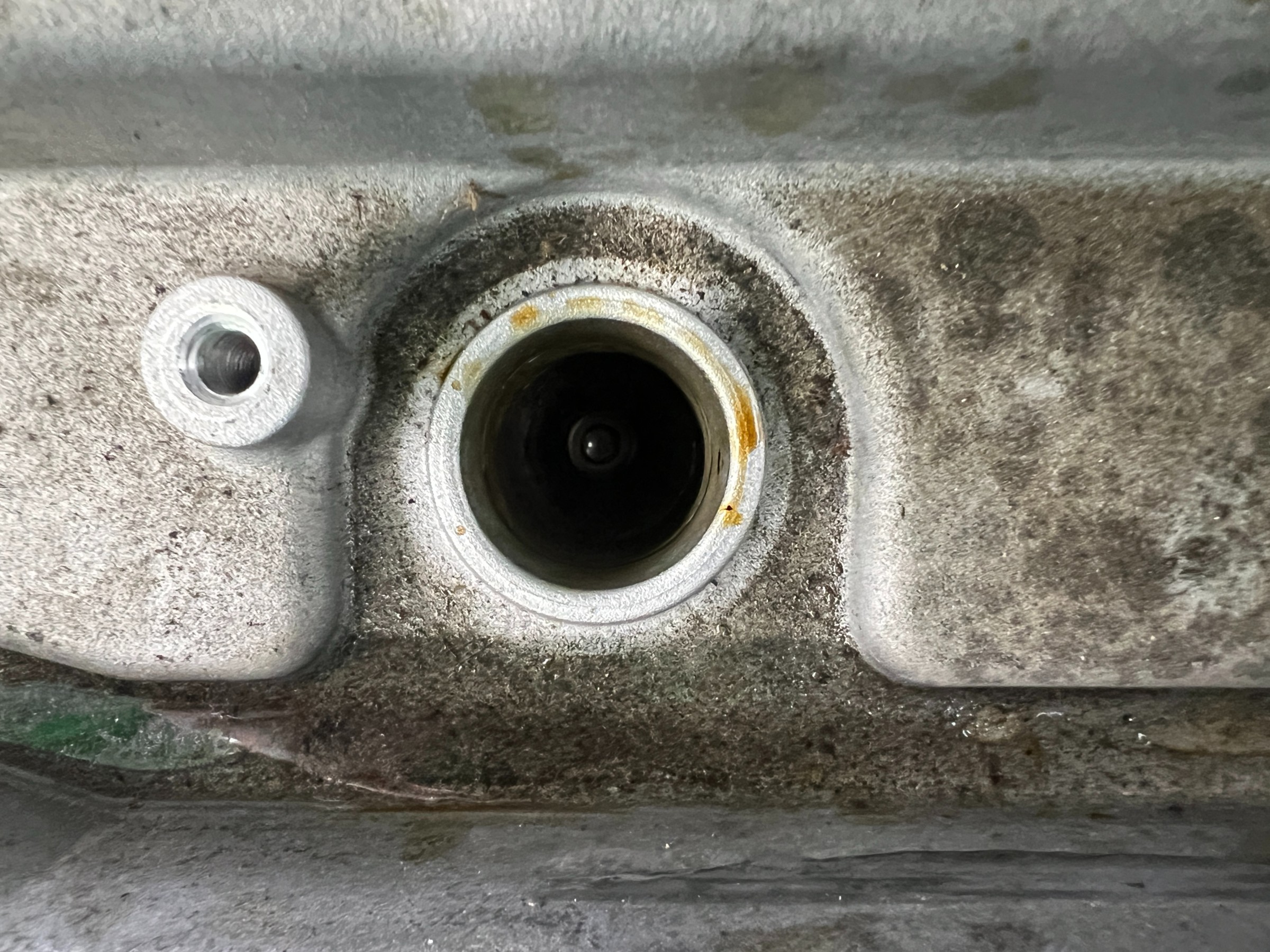 これはプラグホールガスケットの劣化によるオイル漏れです。