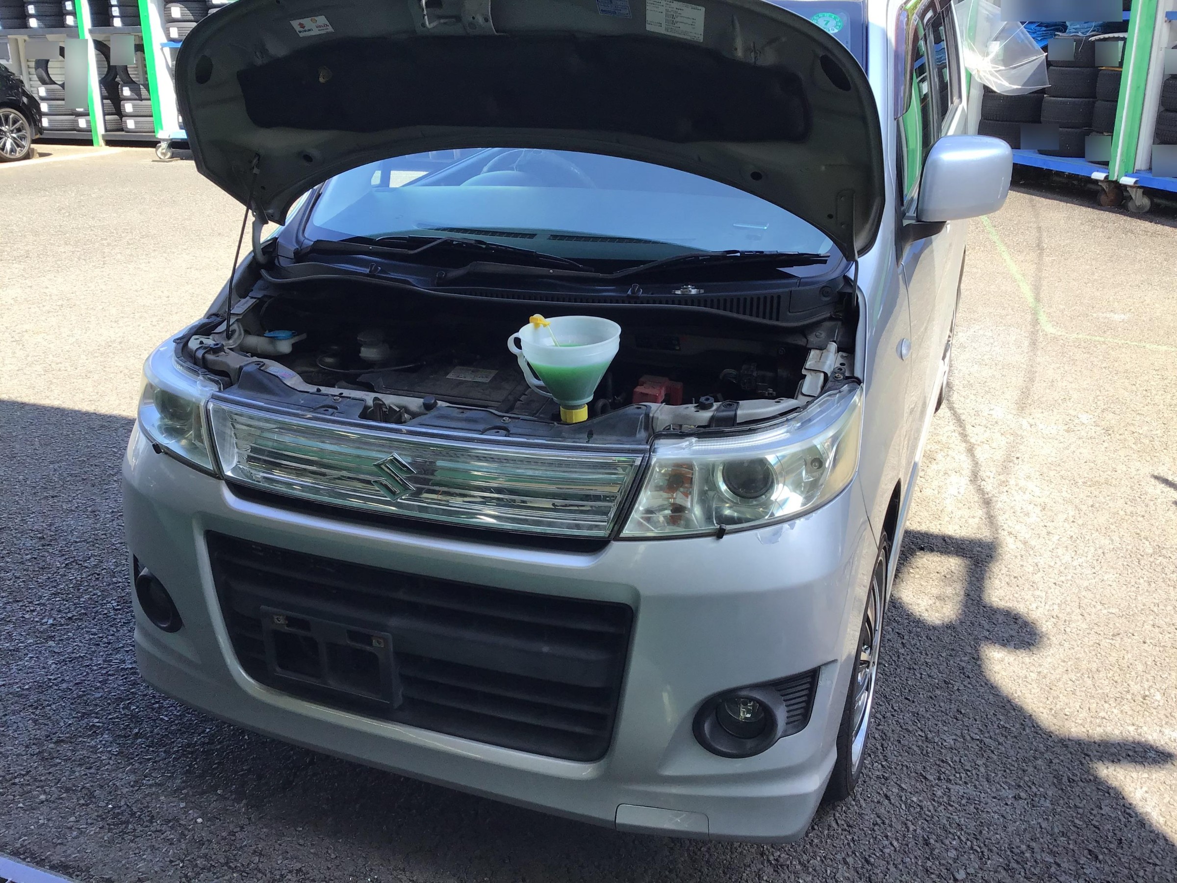 先日点検でラジエーターの水漏れが見つかったスズキ・ワゴンR スティングレー。