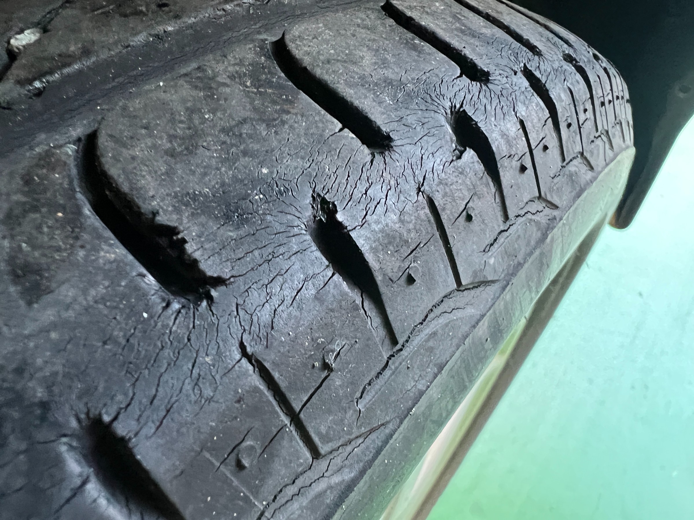 点検中にタイヤも確認したところ、タイヤも要交換レベルでした