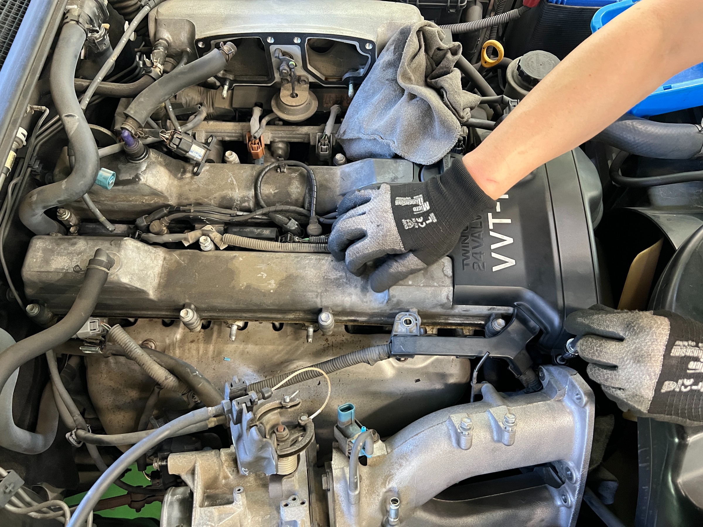 車検整備事例 「最近エンジンがブルブルする感じがする」 直6エンジンのプラグ交換でブルつき改善!本来の滑らかさが復活しました