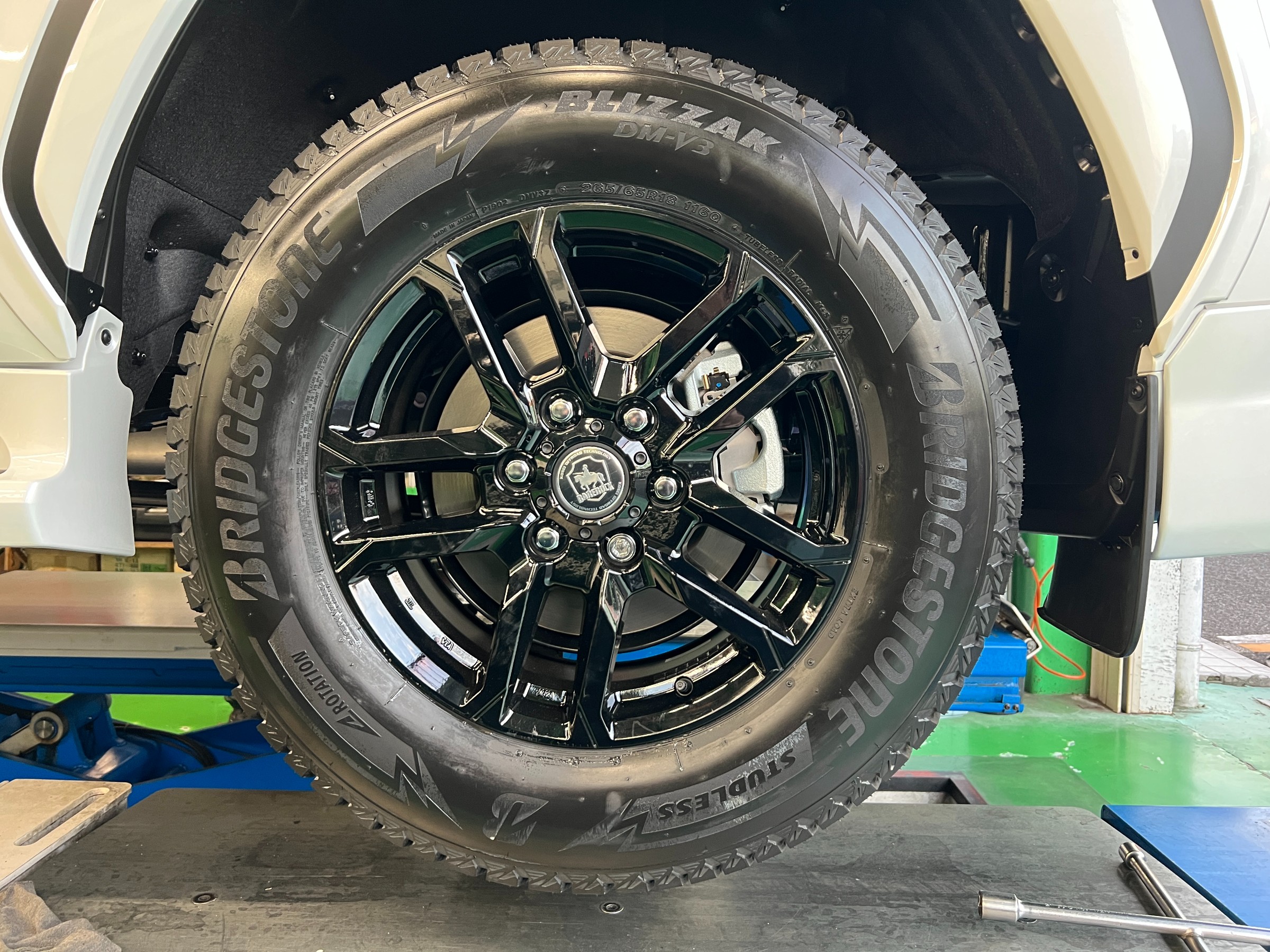 今回装着したのは、BLIZZAK DM-V3 265/65R18 ランクル300の重量・駆動力をしっかり受け止め、
