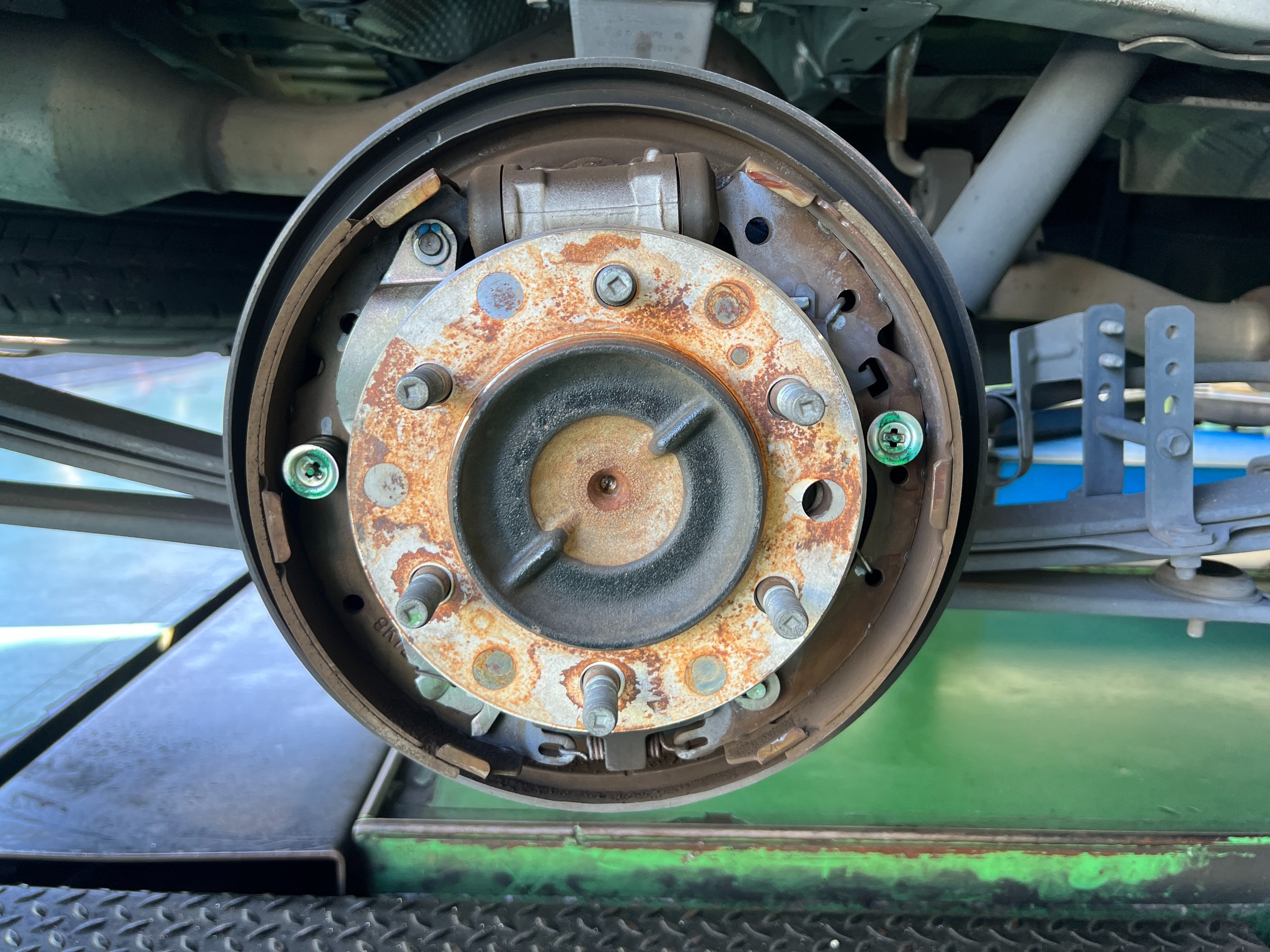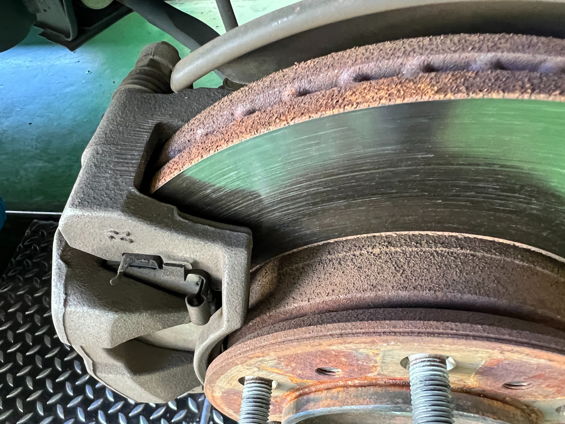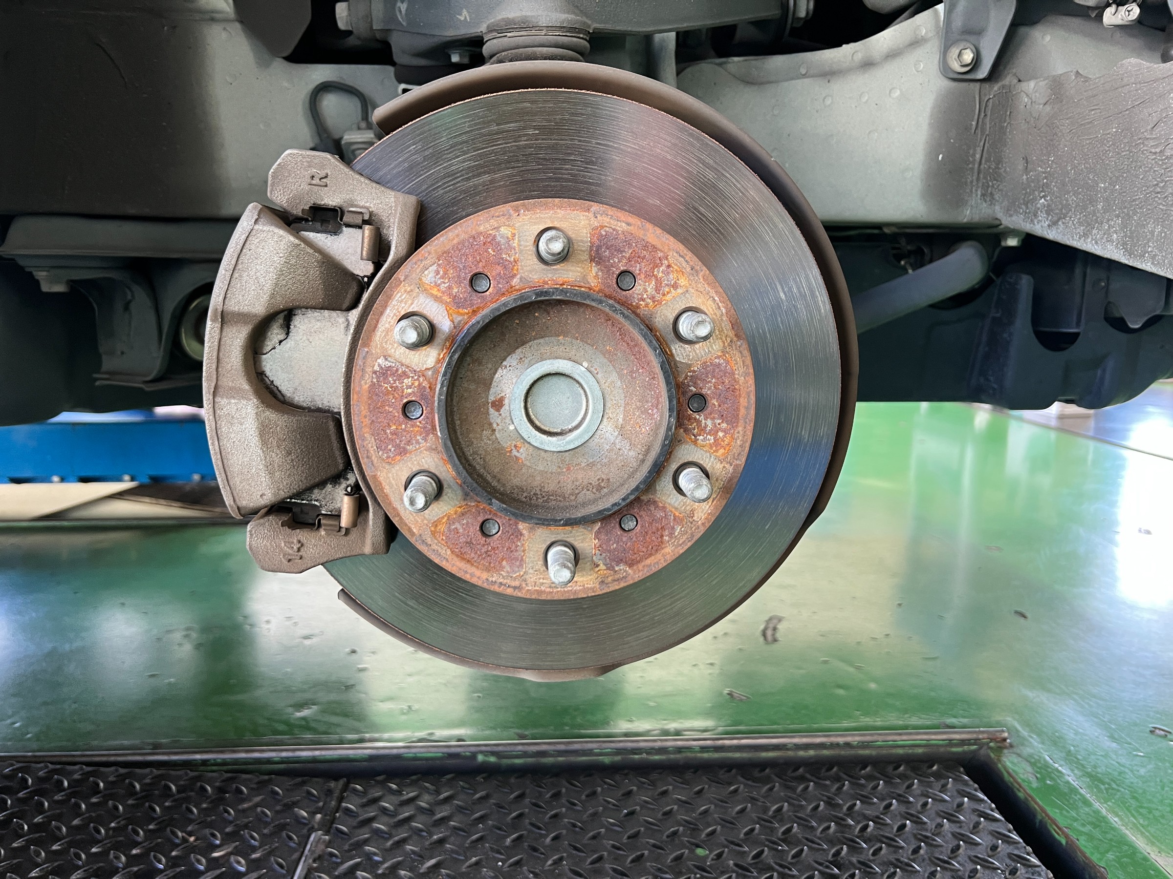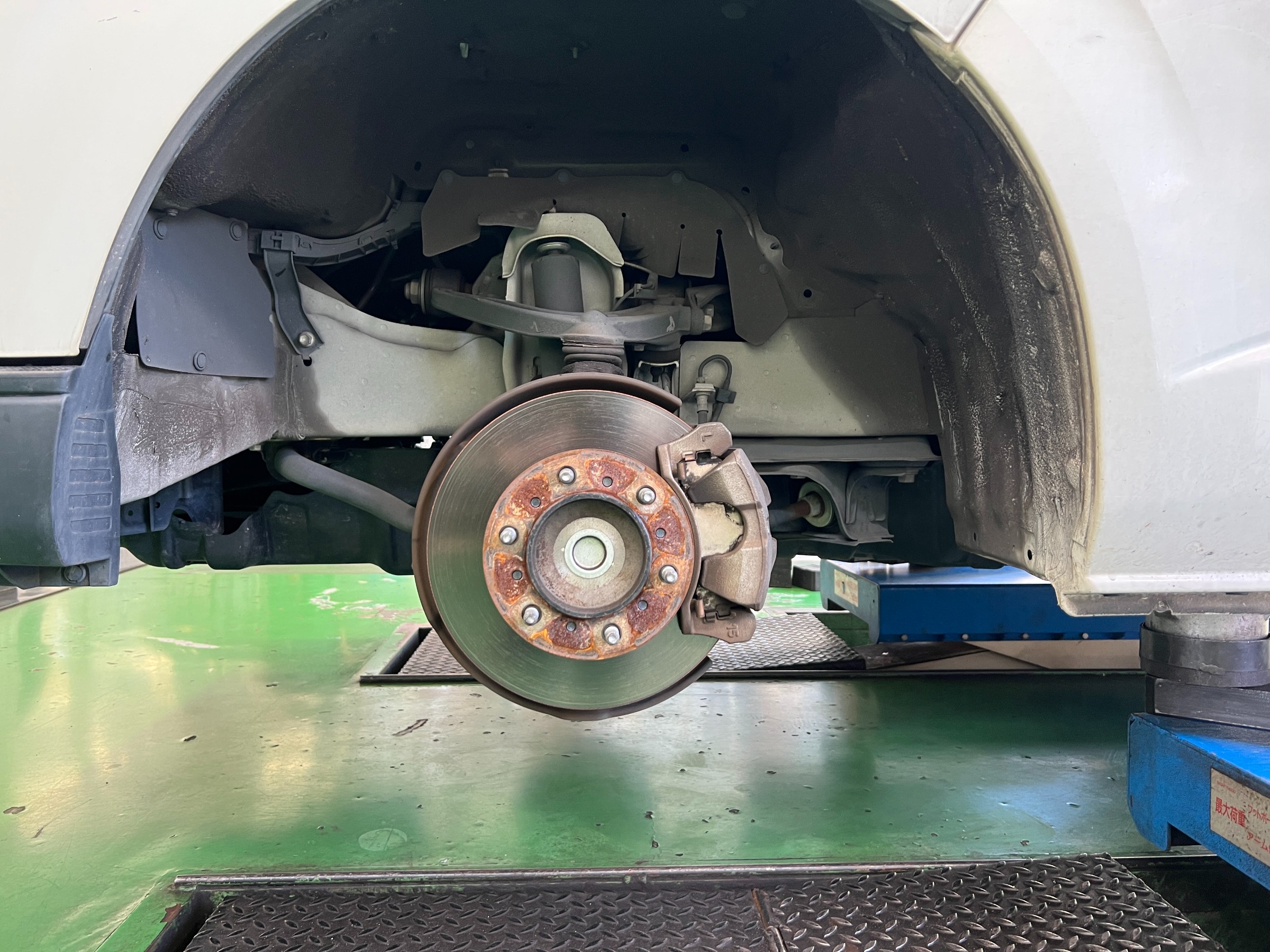 ブレーキダストの付着は多めでしたが、パッド残量・ディスク・ドラムの状態・作動不良・異音