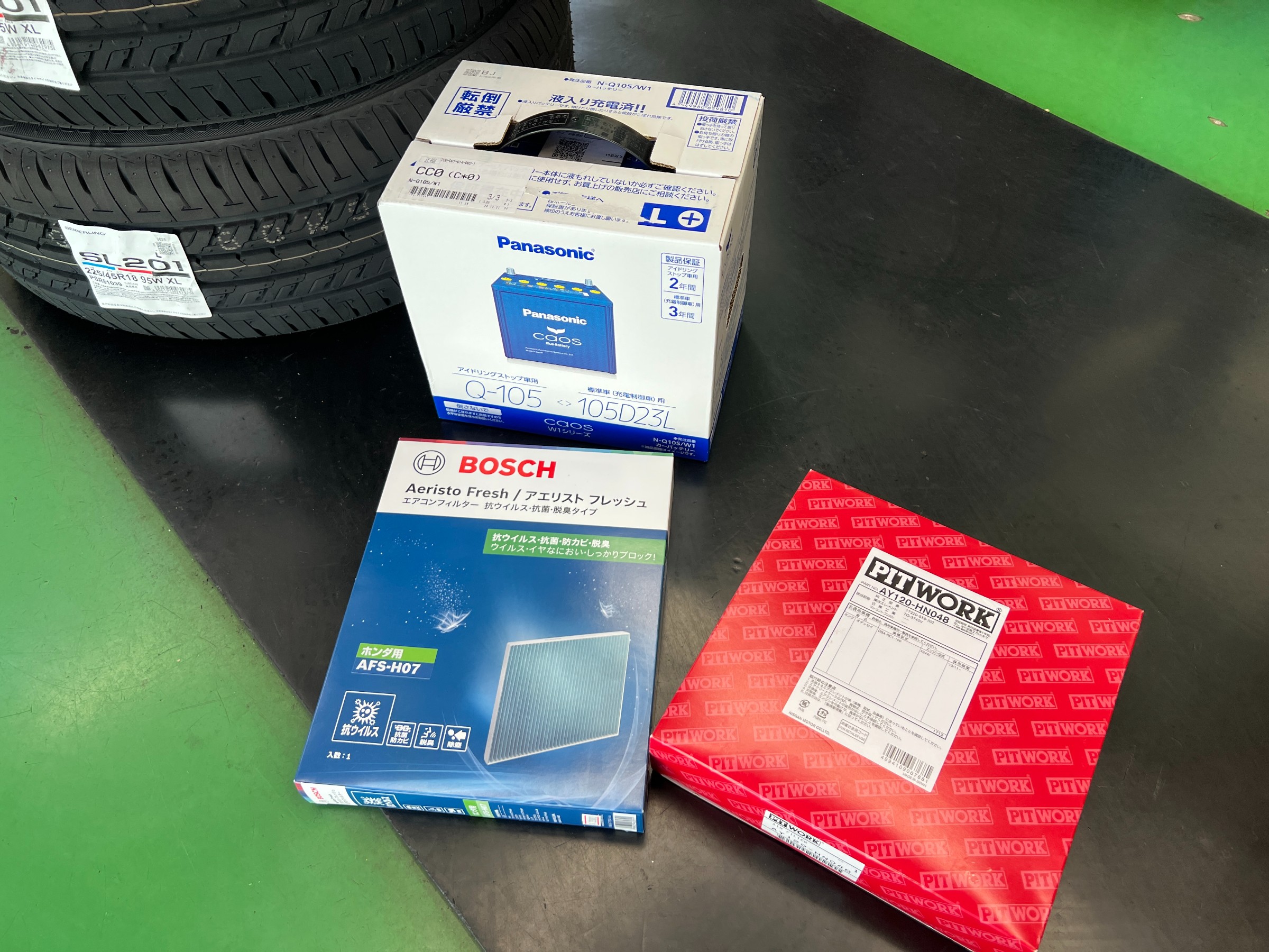 今回は定期交換部品を中心とした車検整備となりました。走行距離が少ないお車でも、・タイヤ・バッテリー・エアコンフィルターといった部品は年数による劣化が進みます。