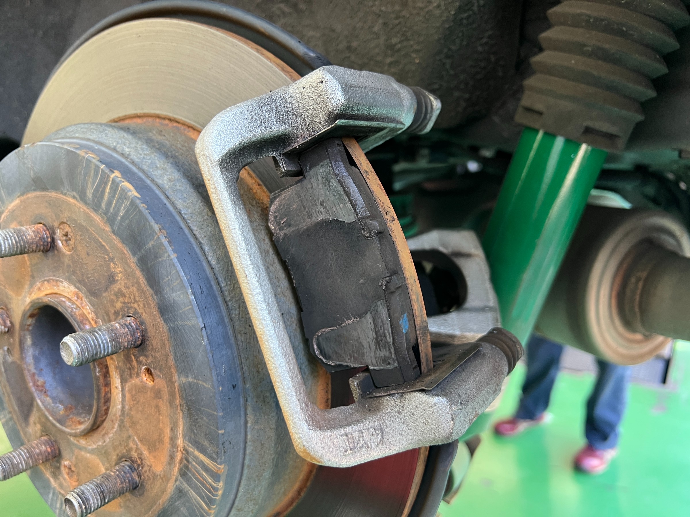 ブレーキパッドの残量、ディスクの状態ともに問題なし。清掃・点検で完了しています。