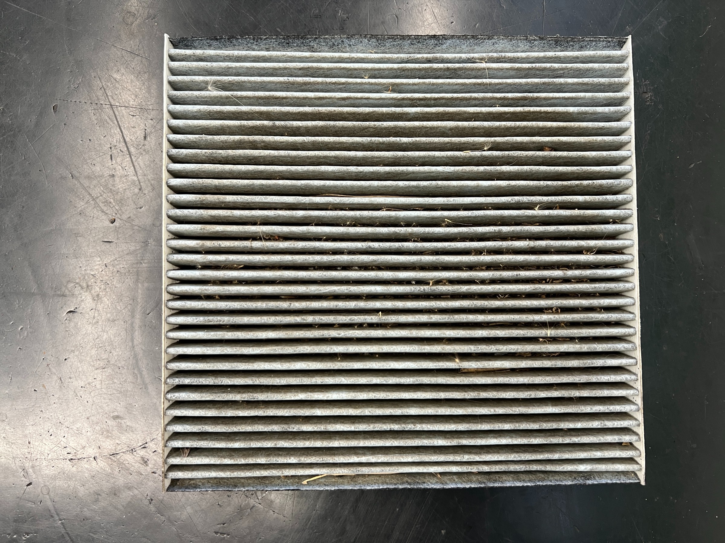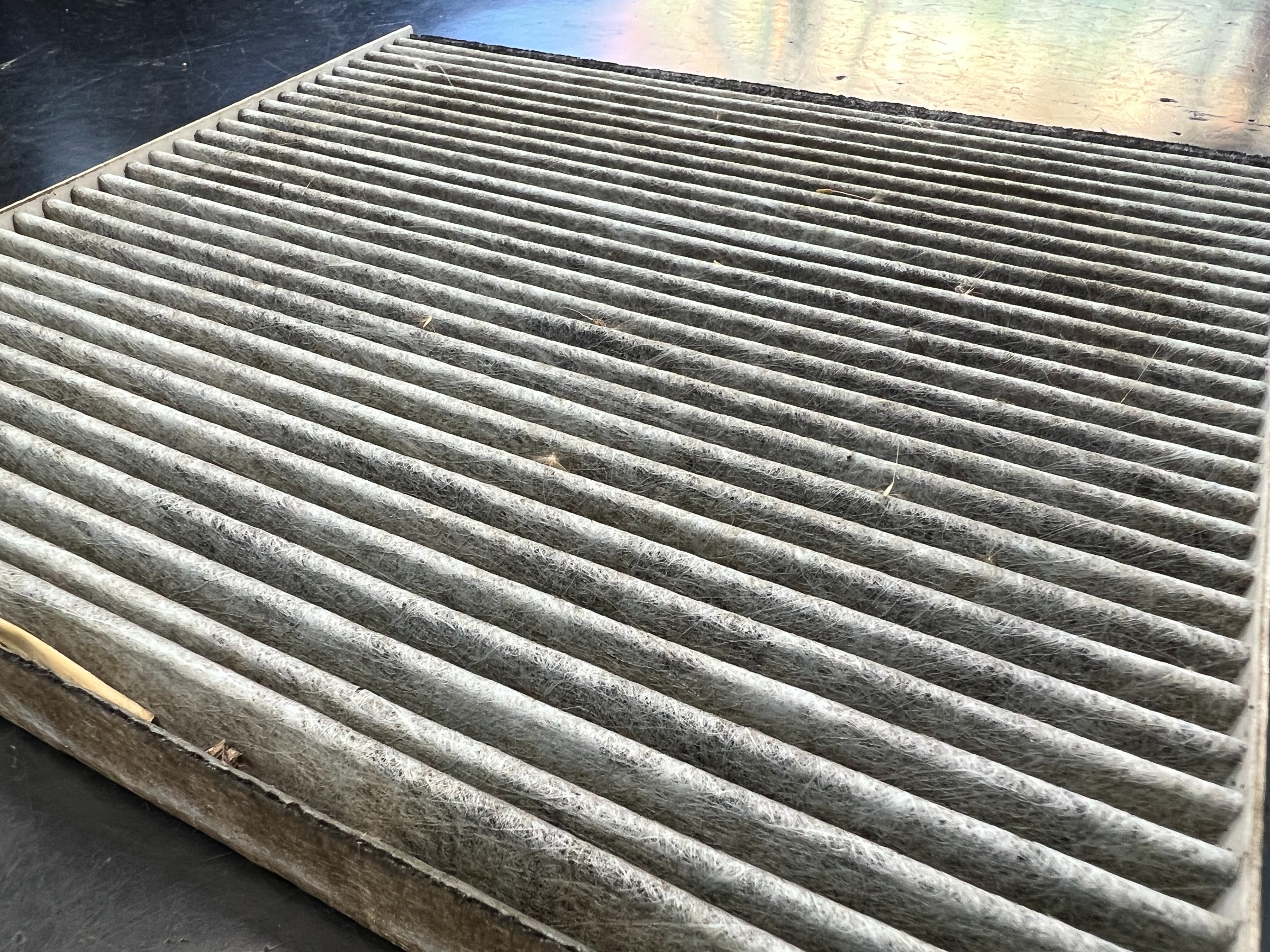 エアコンフィルターは汚れが蓄積していたため交換。交換後はエアコンの風量改善・車内のニオイ対策にもつながります。