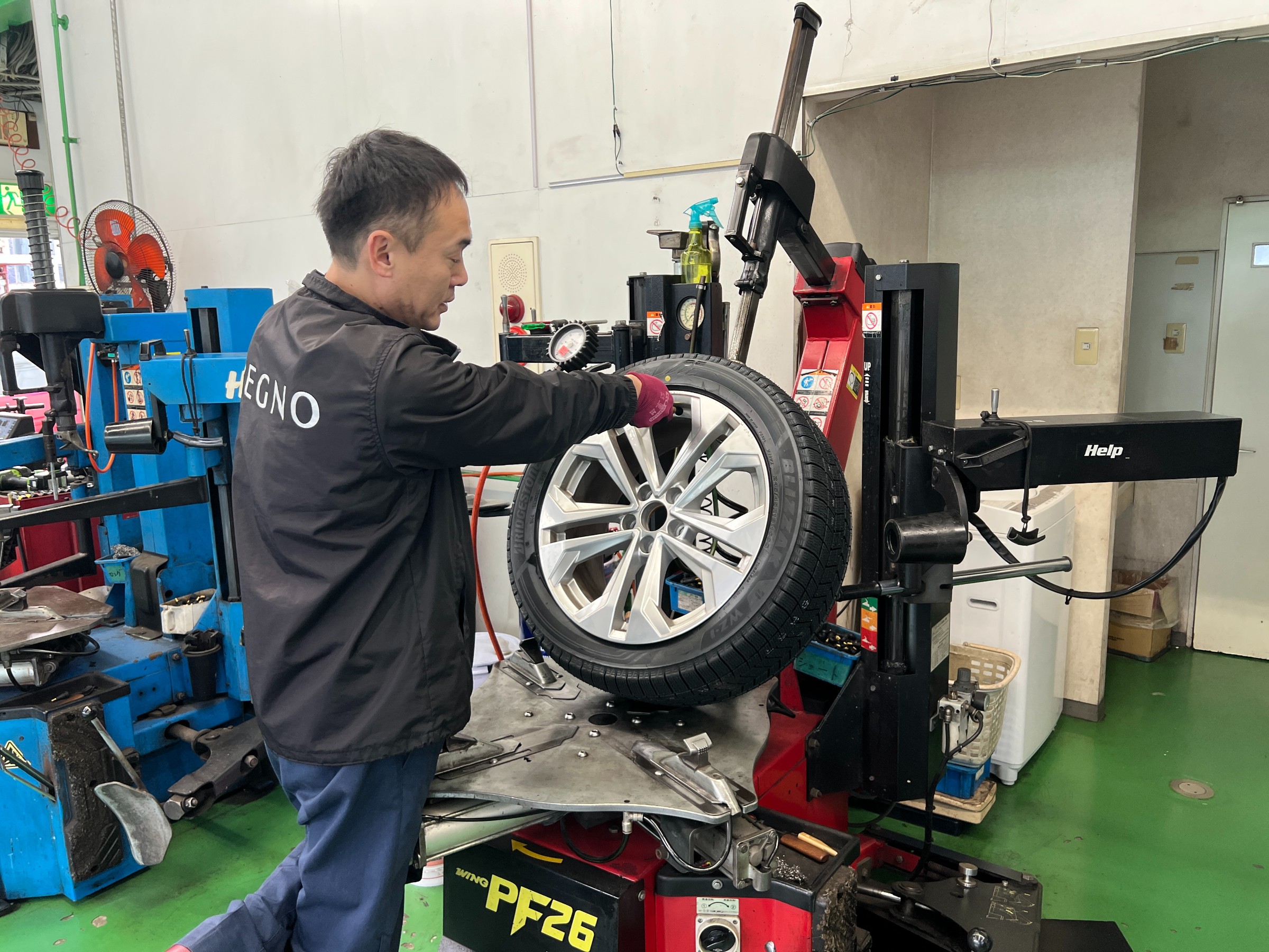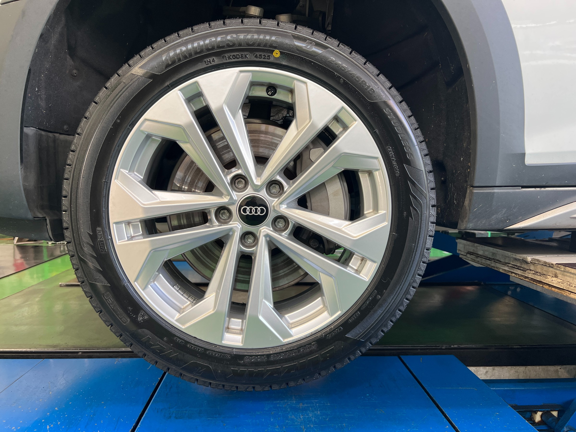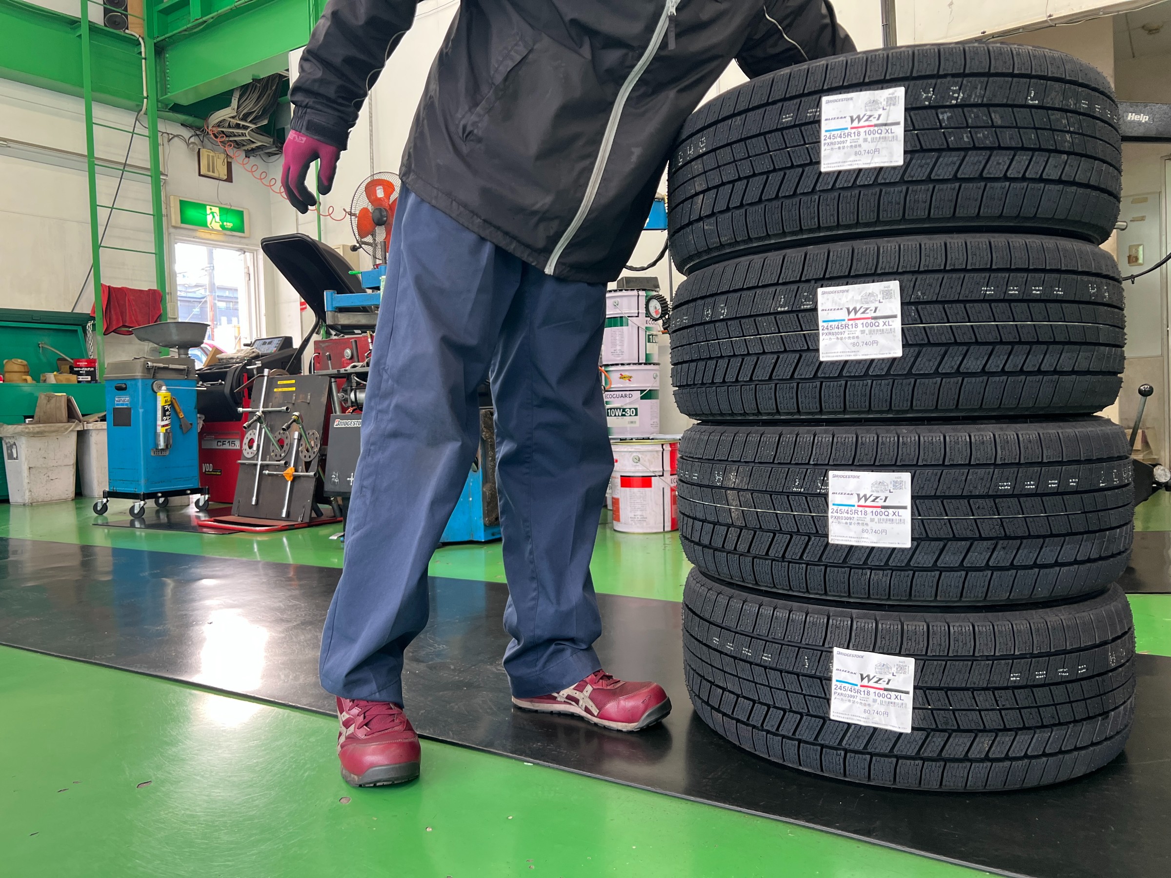 BLIZZAK WZ-1 ポスト 2026年2月7日 BLIZZAK WZ-1 の取り付けです。 夏タイヤ用にアルミホイールを新たに装着するため、冬用としてスタッドレスタイヤへ交換しています。 純正アルミホイールを使用し、サイズは 245/45R18。 バランス調整、空気圧調整、締め付け確認を行い、作業完了です。 装着率No.1ブリザックブランド スタッドレスタイヤ - 株式会社ブリヂストン 担当:中村