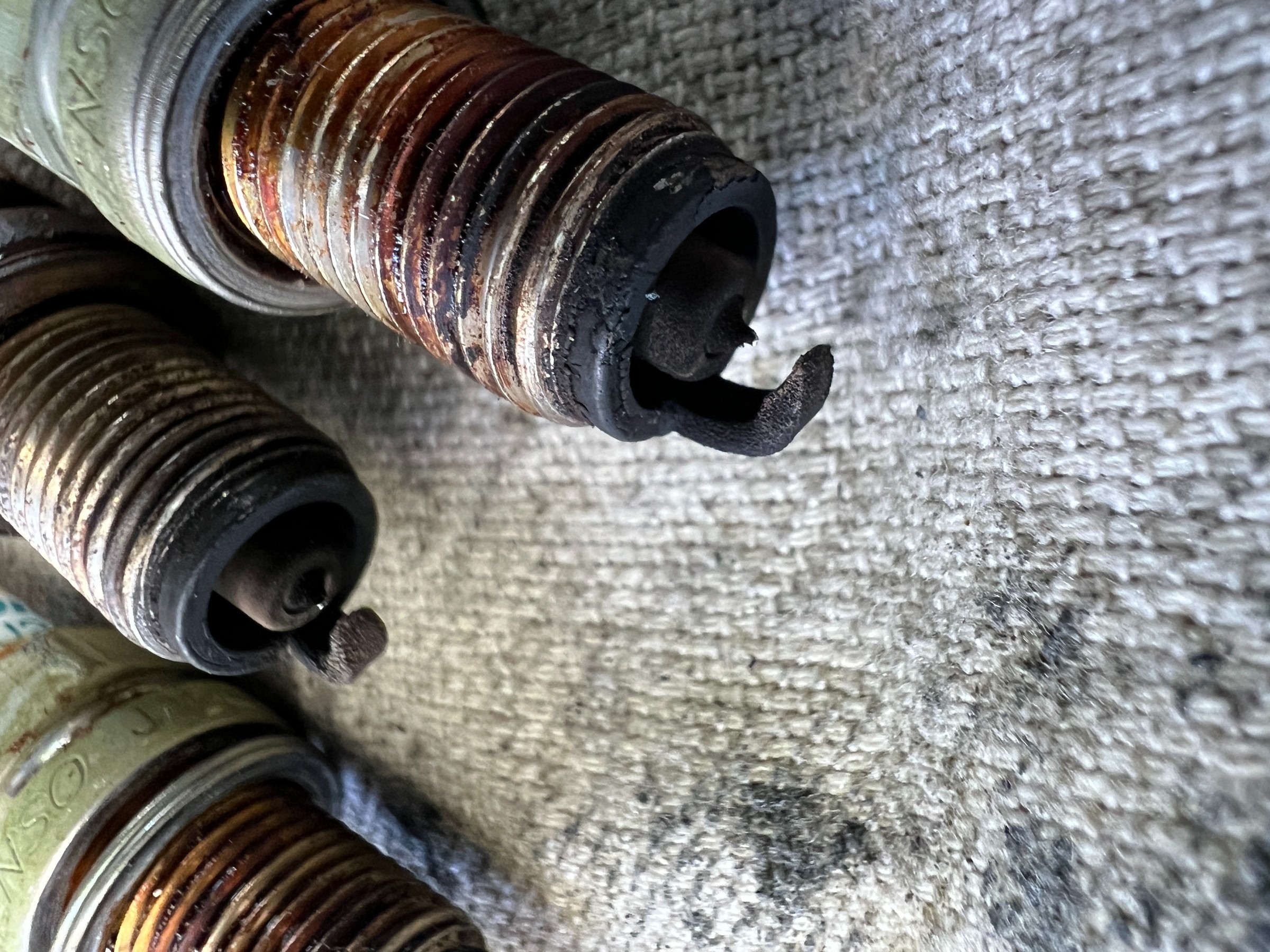 まずは基本点検ということでスパークプラグを確認してみると・・ 原因は…やっぱりスパークプラグでした