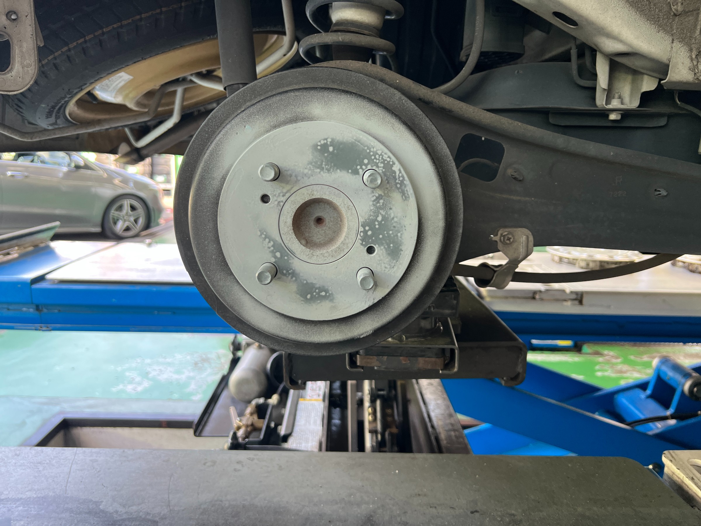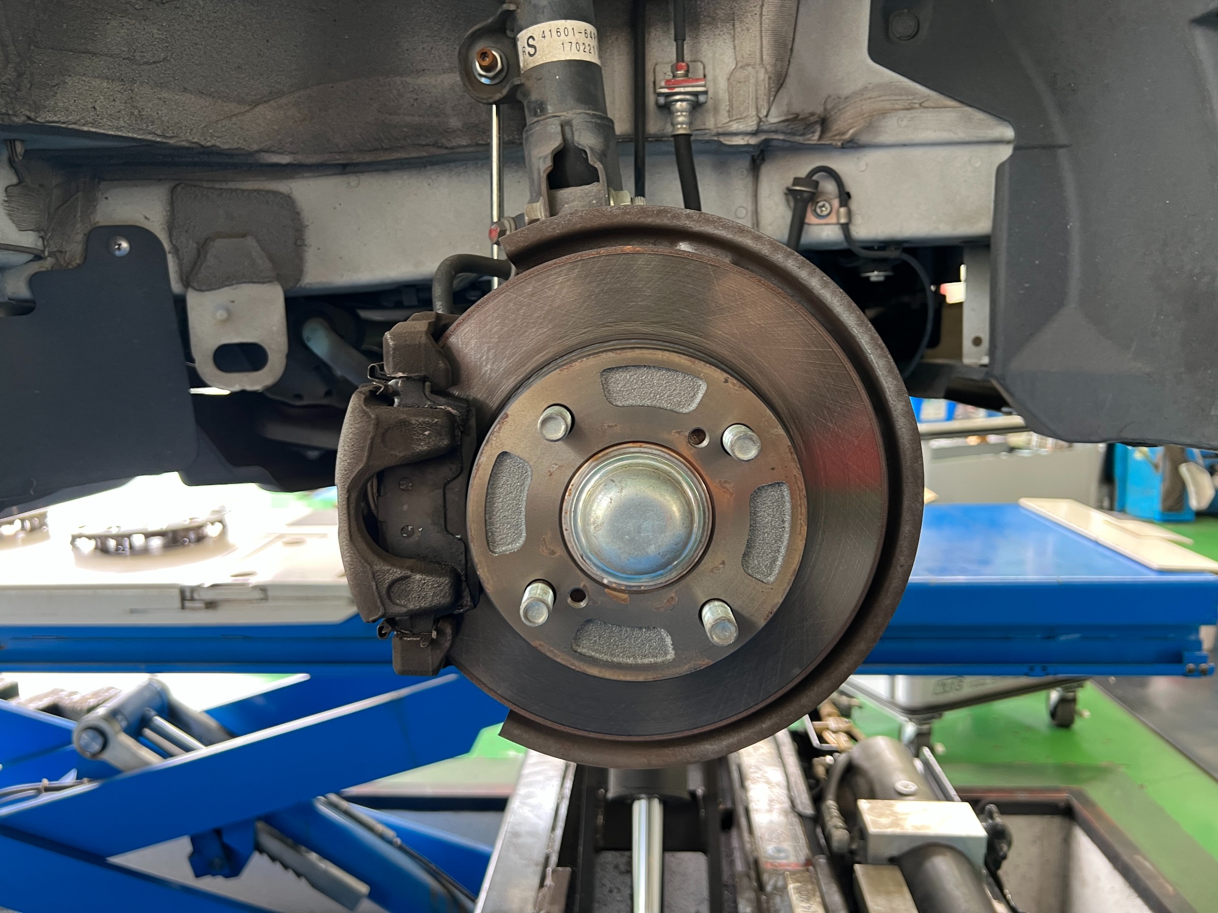 事前の問診で「ブレーキの鳴きが大きい」とのご相談がありましたので、点検時にブレーキ周りを重点的に確認しました。