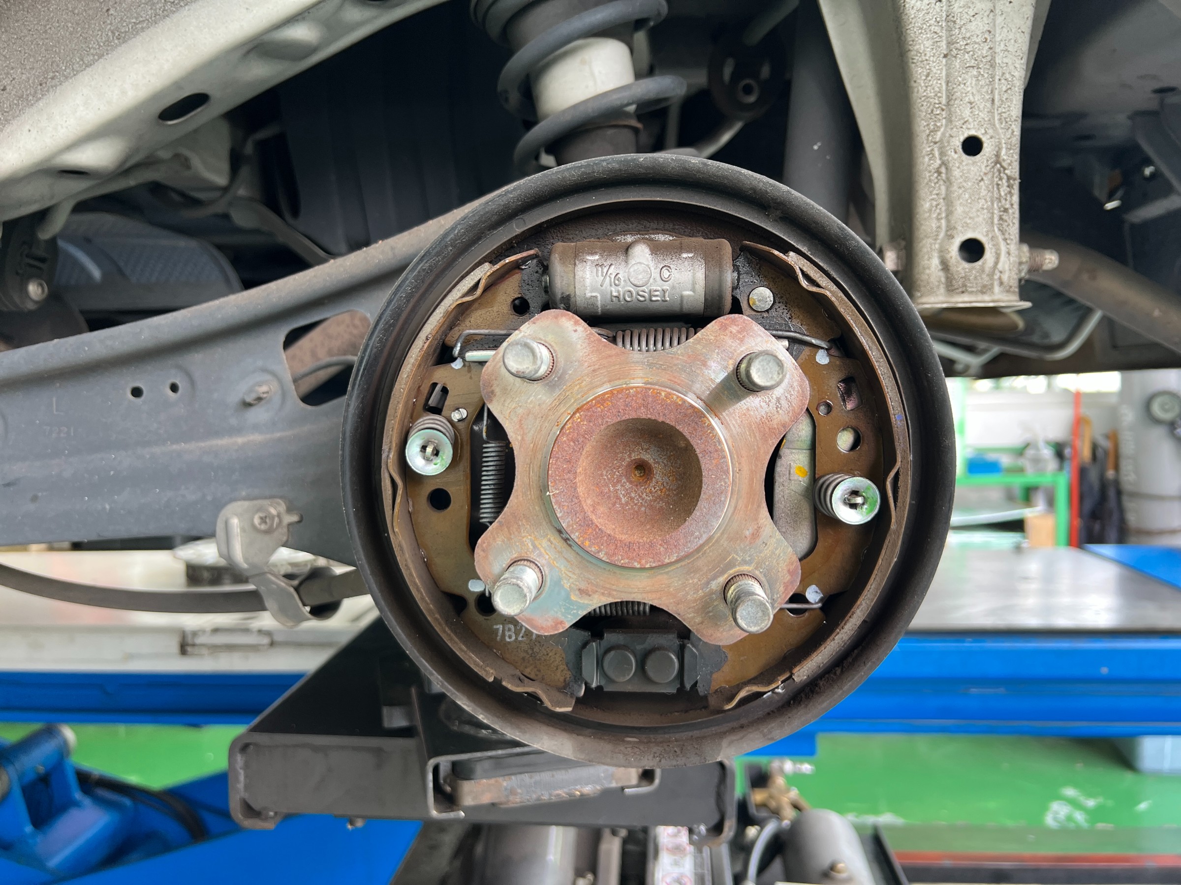 続いてリヤブレーキ(ドラム)を分解点検。