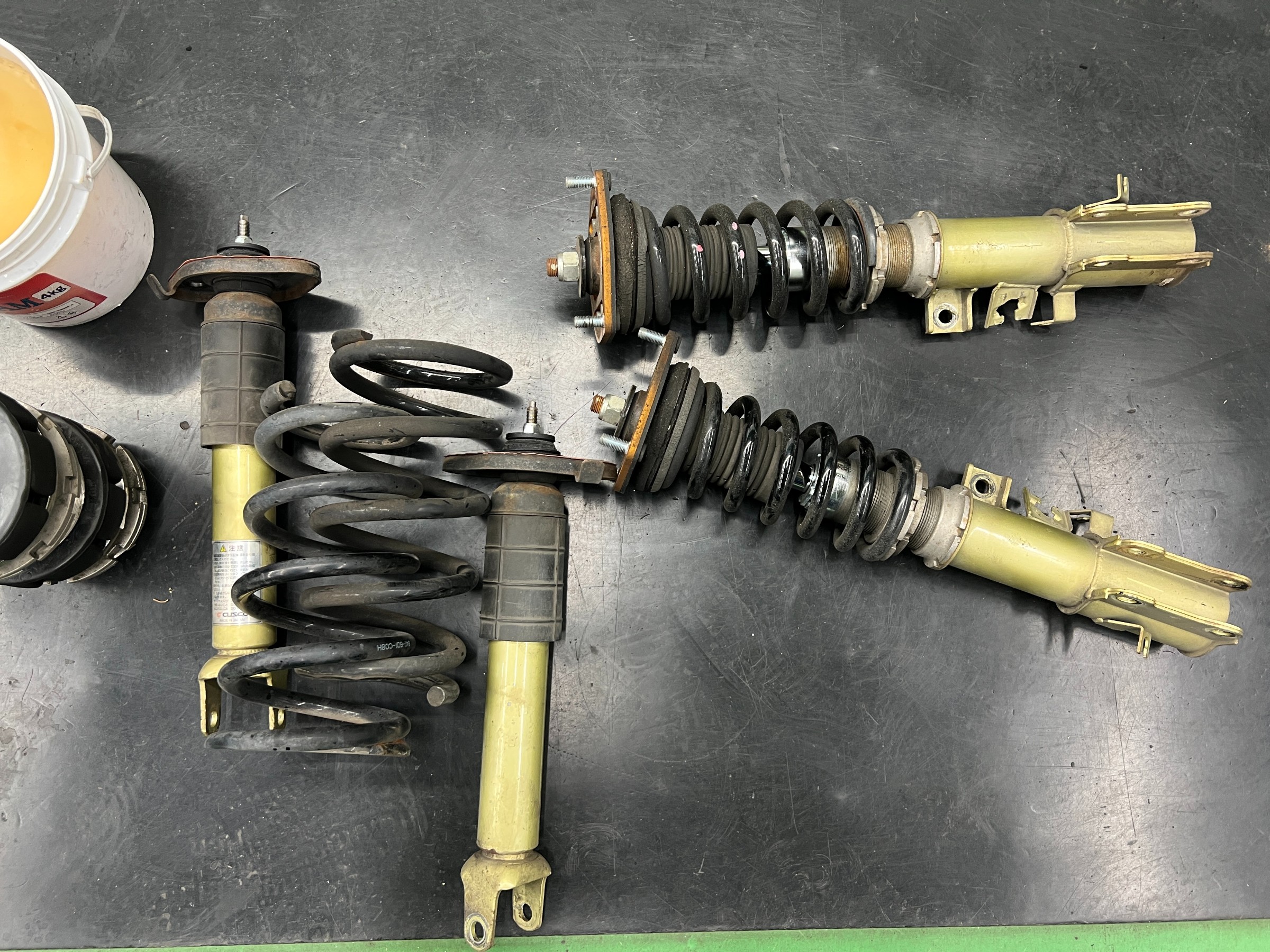これまで使用していたクスコの車高調は、年数相応の使用感が見られる状態でした。
