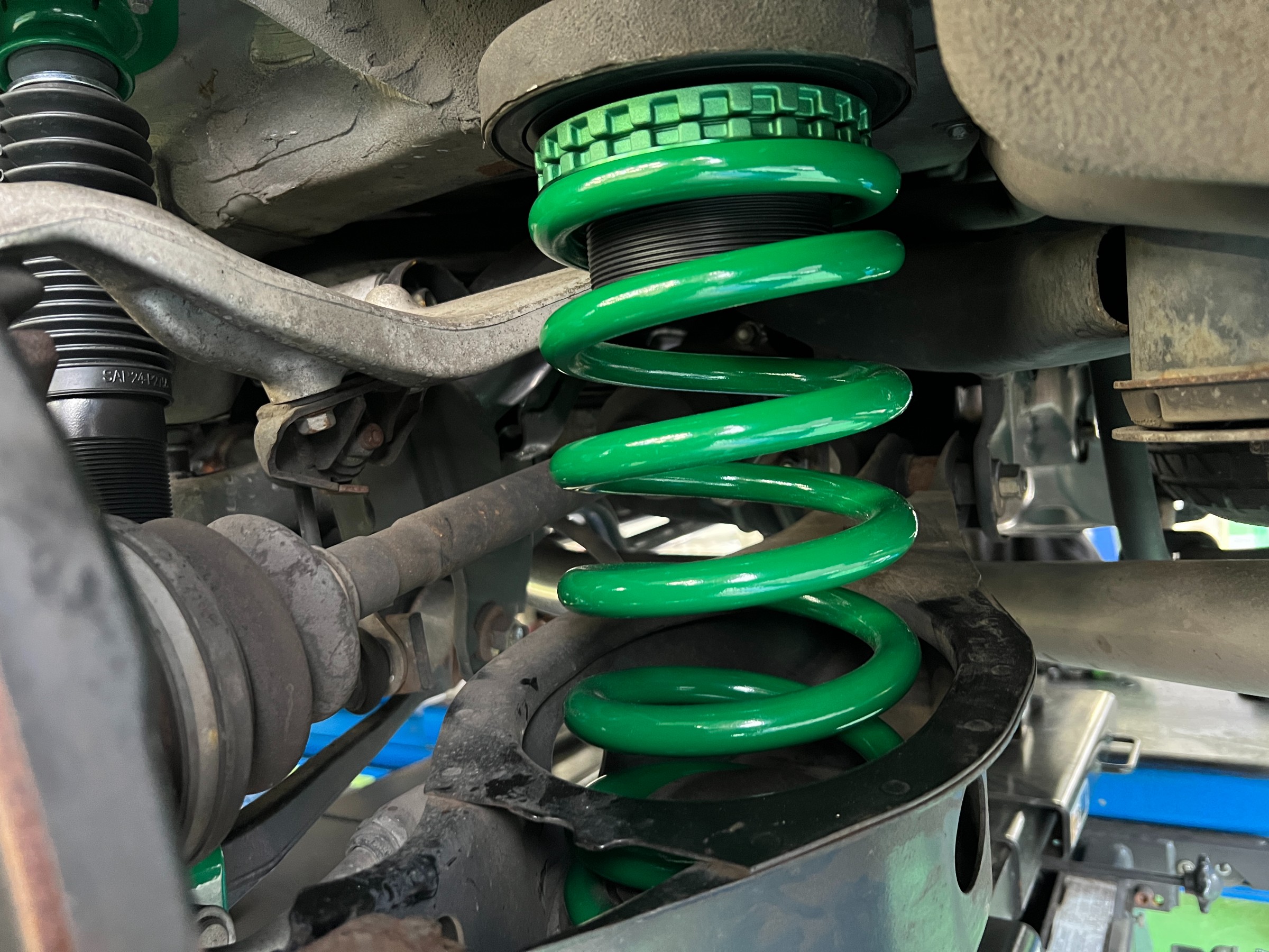 新品の車高調を組み付け後、4輪アライメント調整を実施。