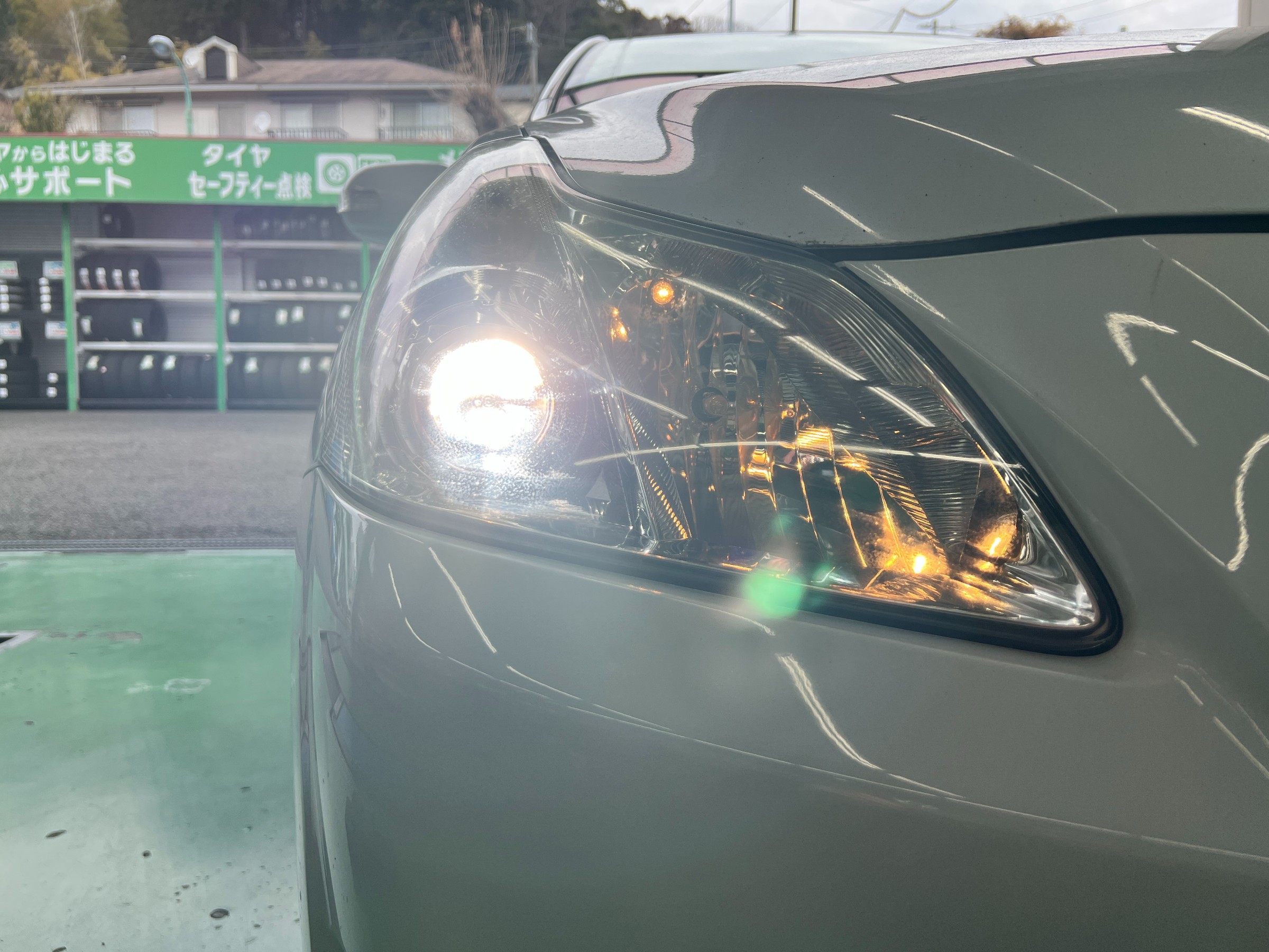 そこで今回は、ヘッドライト磨き、ヘッドライトバルブ交換にて対応。