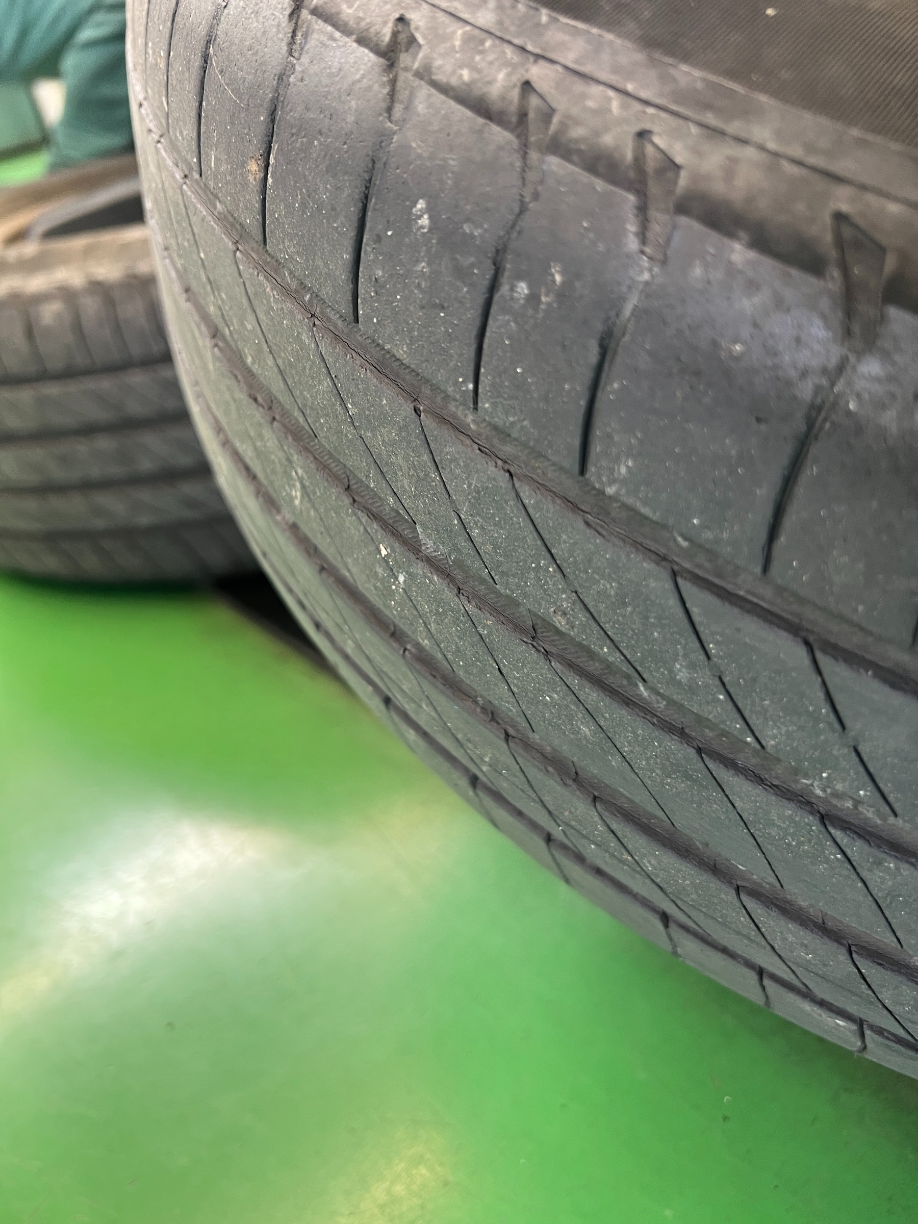 これまで装着されていたタイヤは使用年数の経過により、ひび割れや摩耗が見られる状態でした。