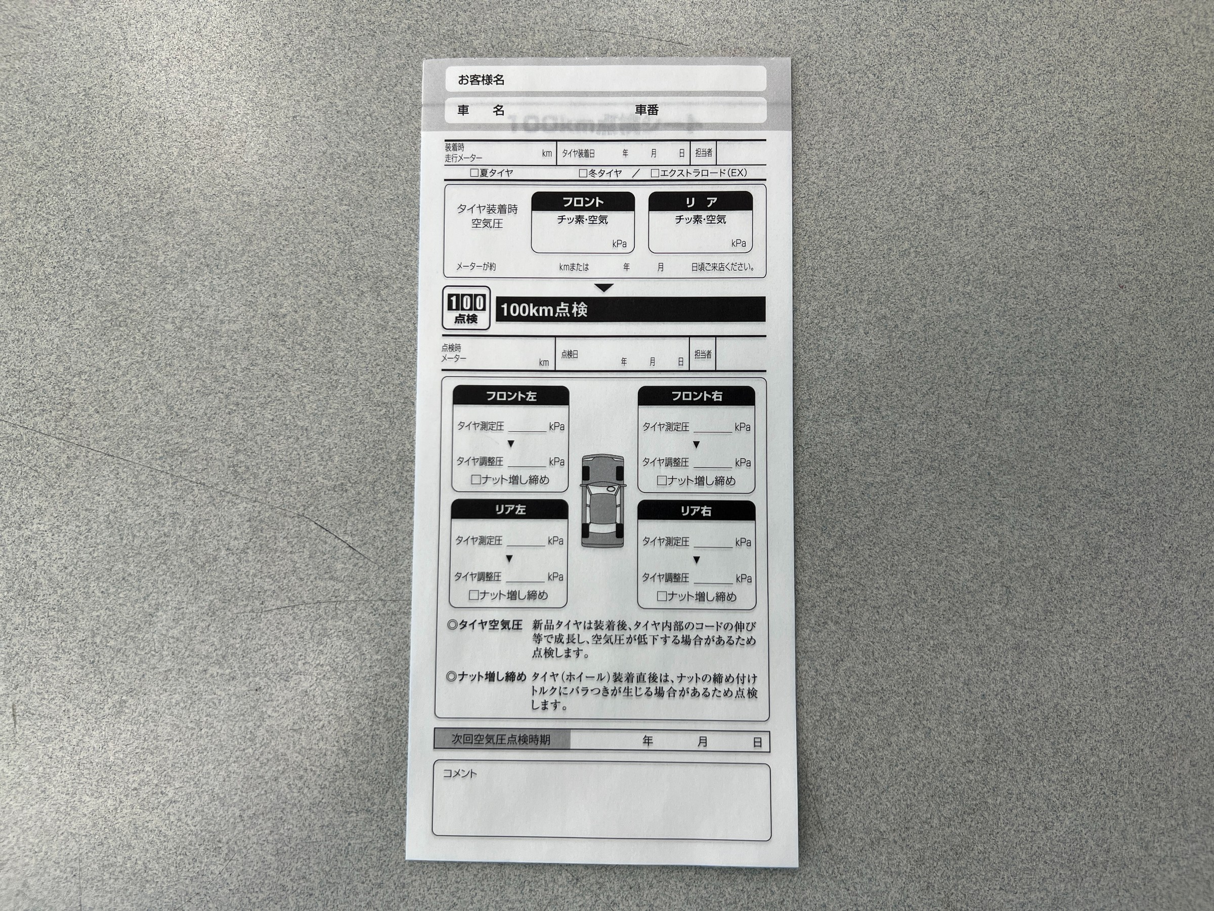 100km点検のご案内(メンテナンスセーフティパス)をお渡ししています。